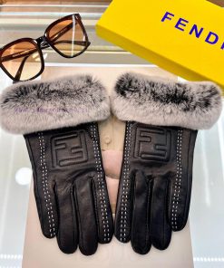 The Fendi FENDI2023 autumn and winter lazy rabbit fur sheep hardware logo gloves with mobileappu8ief