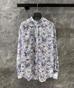 ZC60991 Dior 25 Early Spring New Blue Butterfly Printed Shirt | YB Developed White Bottom Flowe hvrg91sv