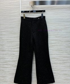 CK77553 Chanel 25 Early Spring New Style Black Coarse Tweed Micro Bell Bottom Pants With A Soci 8du3nfsh