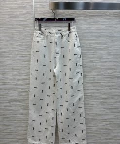 CK77556 Miu Miu 25 New Style Letter Printed Denim Straight Leg Pants White Straight Leg Jeans W 4hq3uxim