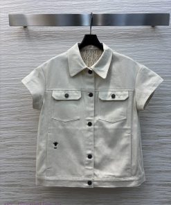 CW76032 Dior 25 Early Spring New Collection With Bee Embroidery Embellished Denim Short Sleeved fd004jhs