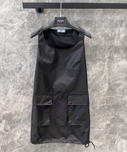 ZL60525 Prada 25Ss Early Spring New Inverted Triangle Logo Solid Color Sleeveless Tank Top Skir dbaqeso8
