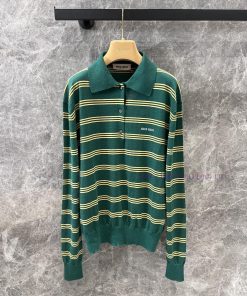 ZT60526 Mium * U 25Ss Early Spring New Letter Inlaid Logo Contrast Stripe Polo Neck Knitted Swe qbux5qzu