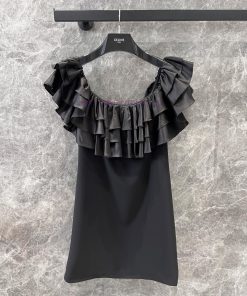 ZL60529 Celine 25Ss Early Spring New One Shoulder Sexy Pure Desire Wind Lotus Leaf Edge Dress | nuwlrhml