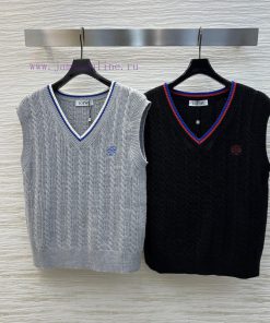 CT76012 Loewe 25 Early Spring New Item V-neck Knitted Vest Loose And Casual Style Contrasting C ejspnoqp