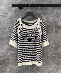 ZT60517 Dior 25SS Early Spring New Striped Knitted Short Sleeve Top 丨 YB Developed Original Bas puv03x74