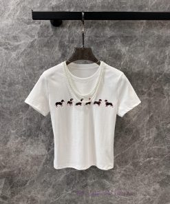 ZT60519 Markg * Ng 25Ss Early Spring New Pearl Necklace Dog Printed Short Sleeve T-shirt | Prod 9fm7vkr7