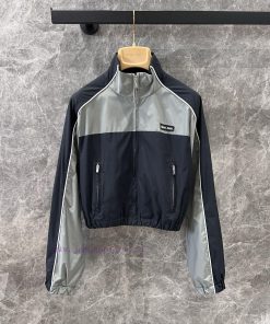ZW60520 Miumi * 25Ss Early Spring New Letter Patch Stand Up Collar Color Blocked Short Jacket J zrnkohg9