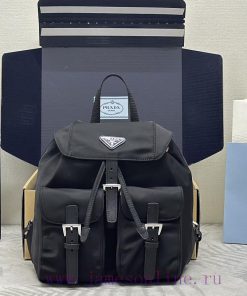 The new backpack 1BZ677A features a silver buckle and a leather edge cover. This nylon backpcjakyms3