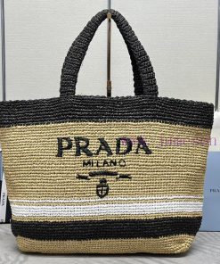 The new large fiber tote bag 1BG442 adopts an imported Lafite grass design, which is very haowdb5mmr