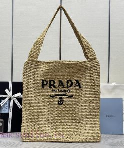 Prada's new Lafite straw woven tote and large shoulder strap crossbody bag 1BG182 in apricotwnz1198s