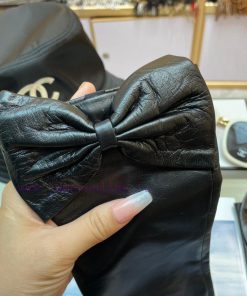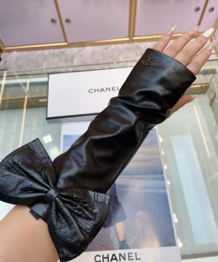 ‼ Chanel large bow, Chanel European new top women’s high-end half finger gloves, 100% selected imported sheepskin, Chanel official sheepskin leather, smooth, delicate, soft and top-notch feel, identify imported sheepskin with feel, original gold camellia flower, top-notch workmanship, no detail missed, authentic open edition, purchase grade, matched with Chanel full set packaging size M L