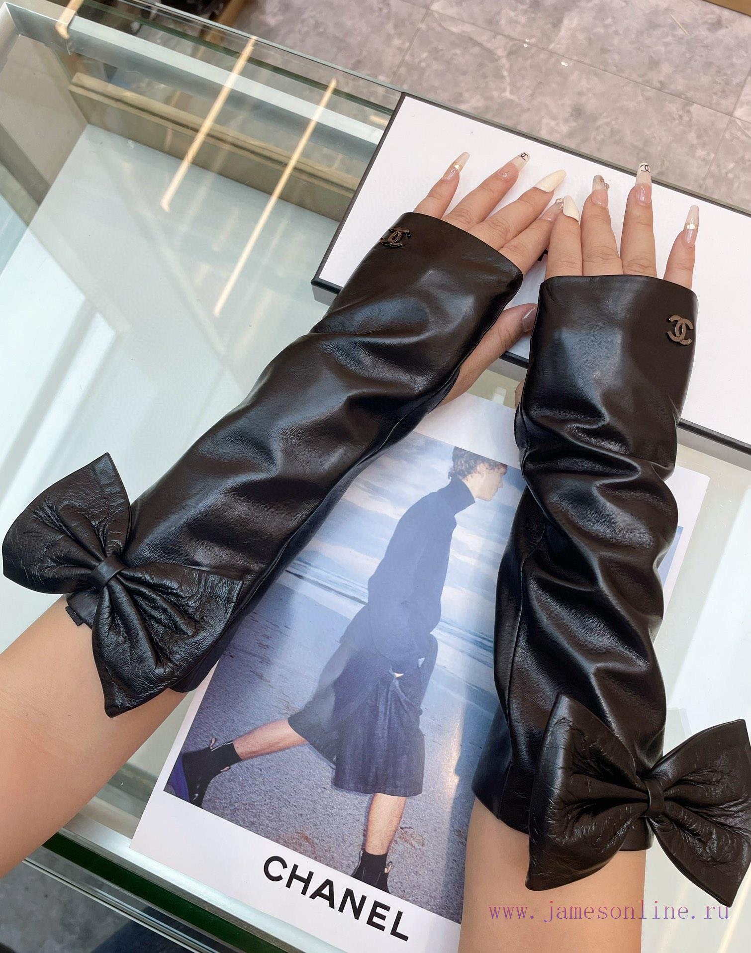 ‼ Chanel large bow, Chanel European new top women’s high-end half finger gloves, 100% selei9yao9rk