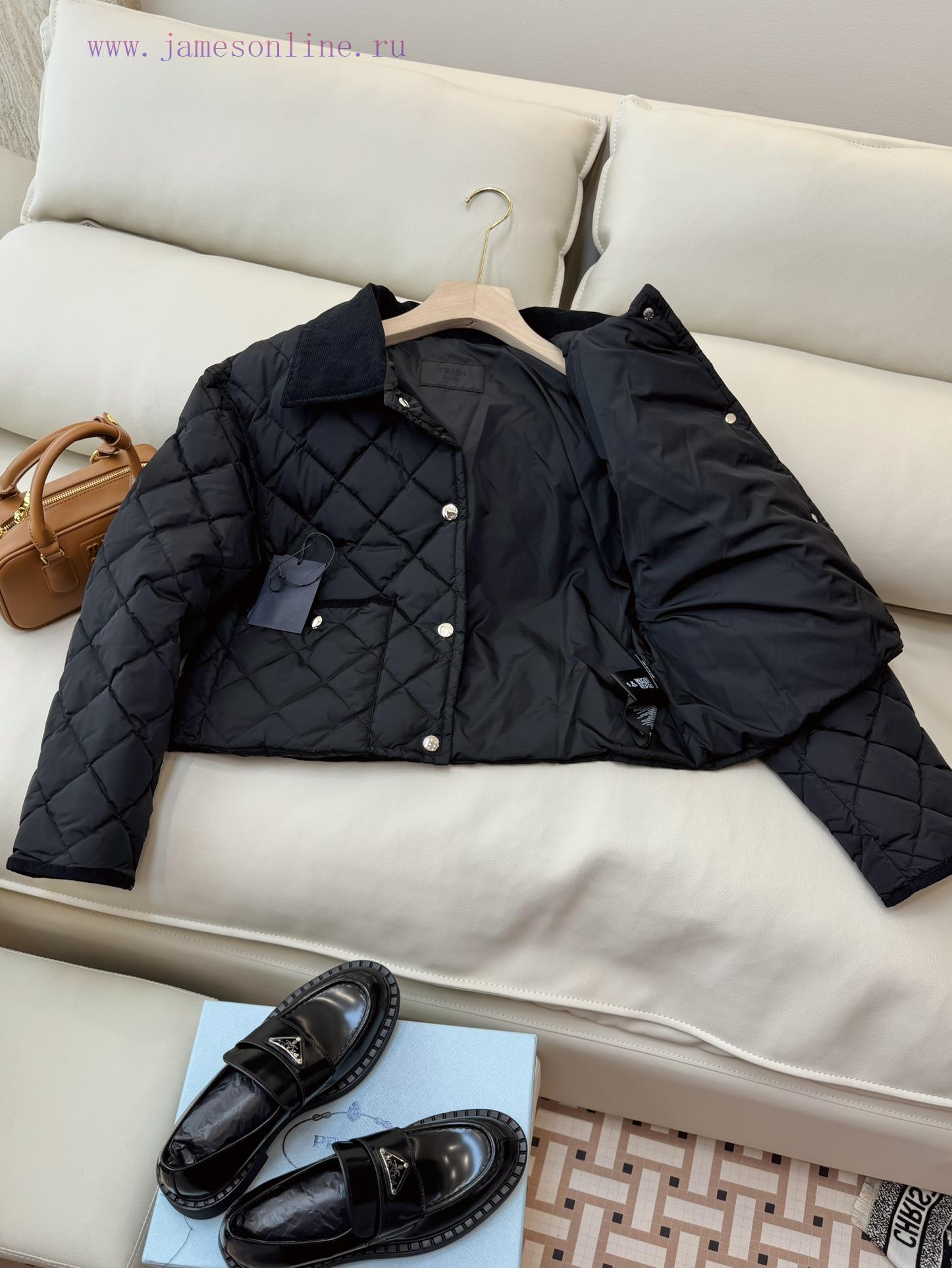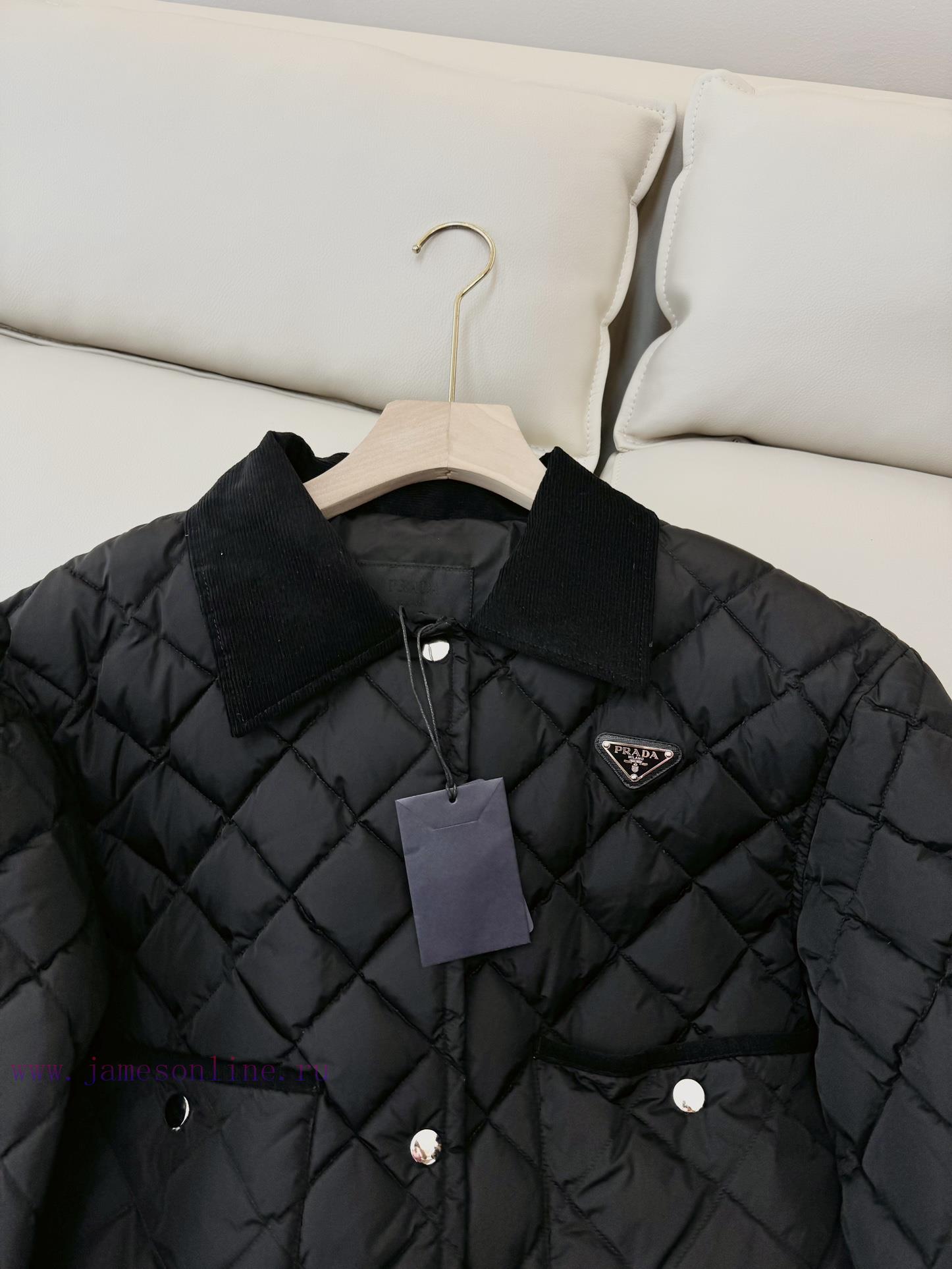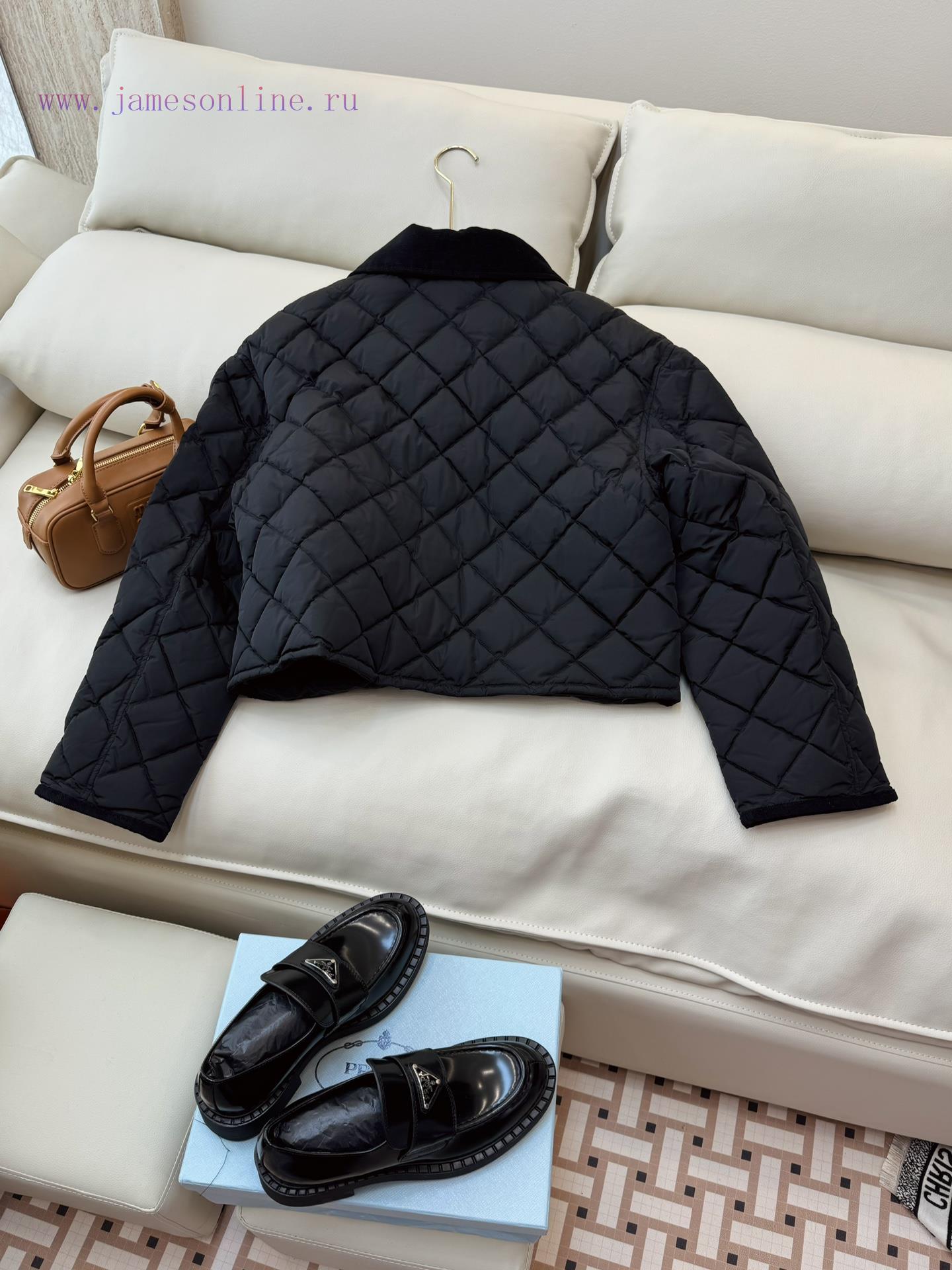 24007 non refundable and non exchangeablePrada popular diamond grid short style 90% white goose down triangle logo down jacket black SML
