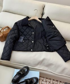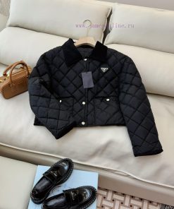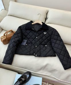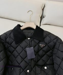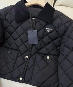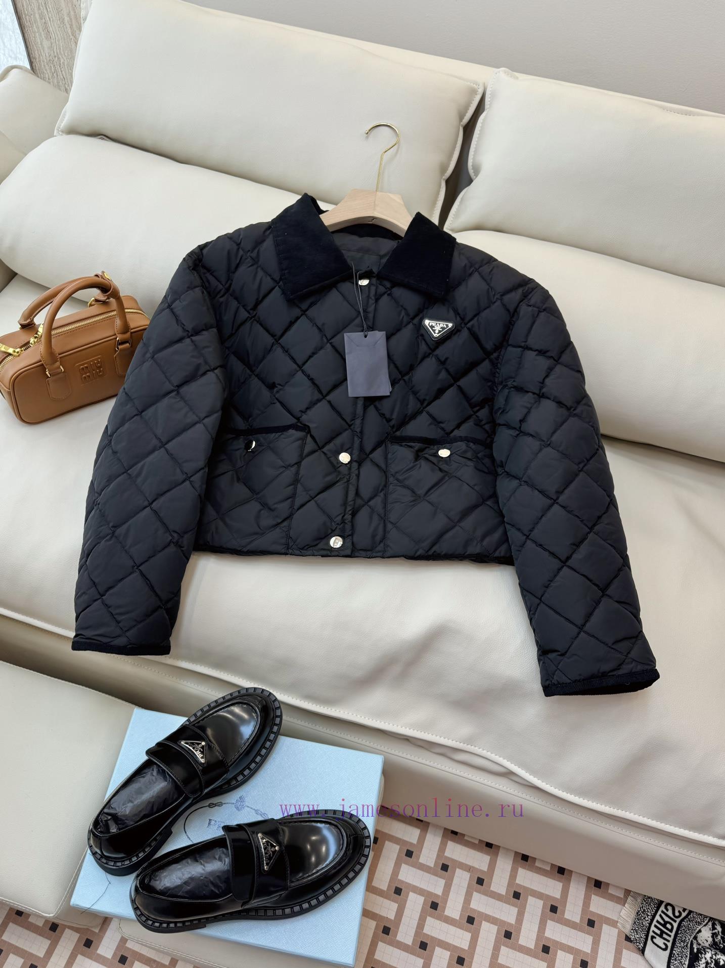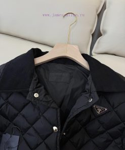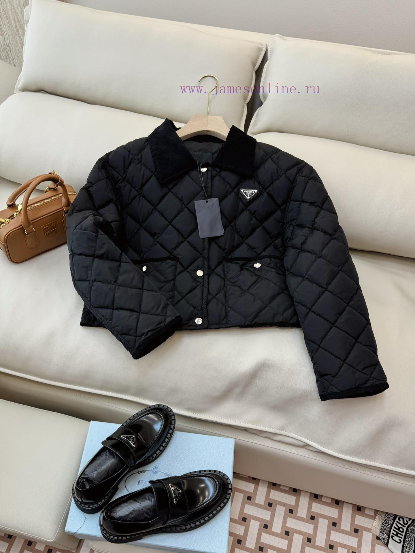 24007 non refundable and non exchangeablePrada popular diamond grid short style 90% white goose down triangle logo down jacket black SML