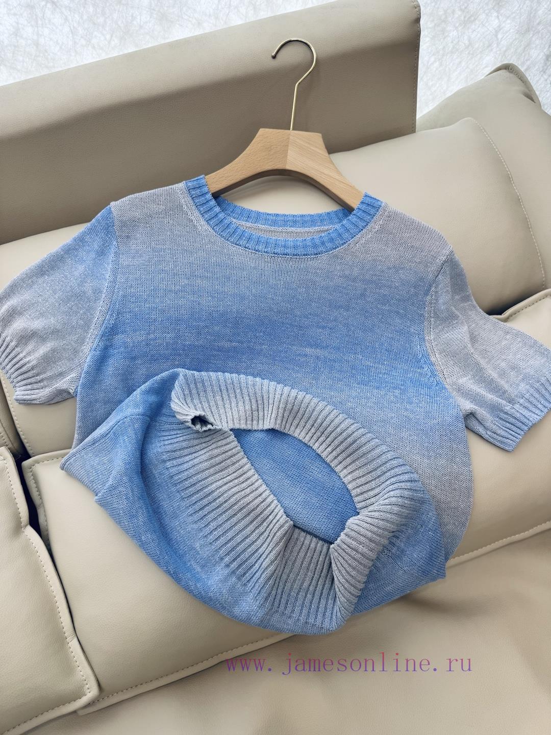 COD-Cash On Delivery Available=Αντικαταβολή Διαθέσιμη=Utánvéttel rendelhető250041 new knitted sweater Loro Piana short sleeved gradient color gold button cotton short sleeved knitted sweater in five colors SML