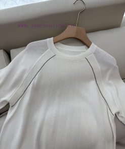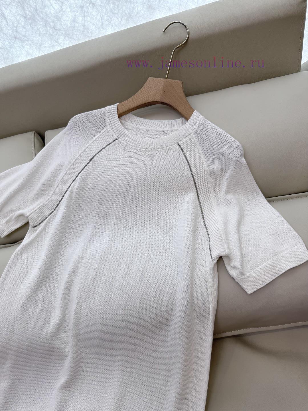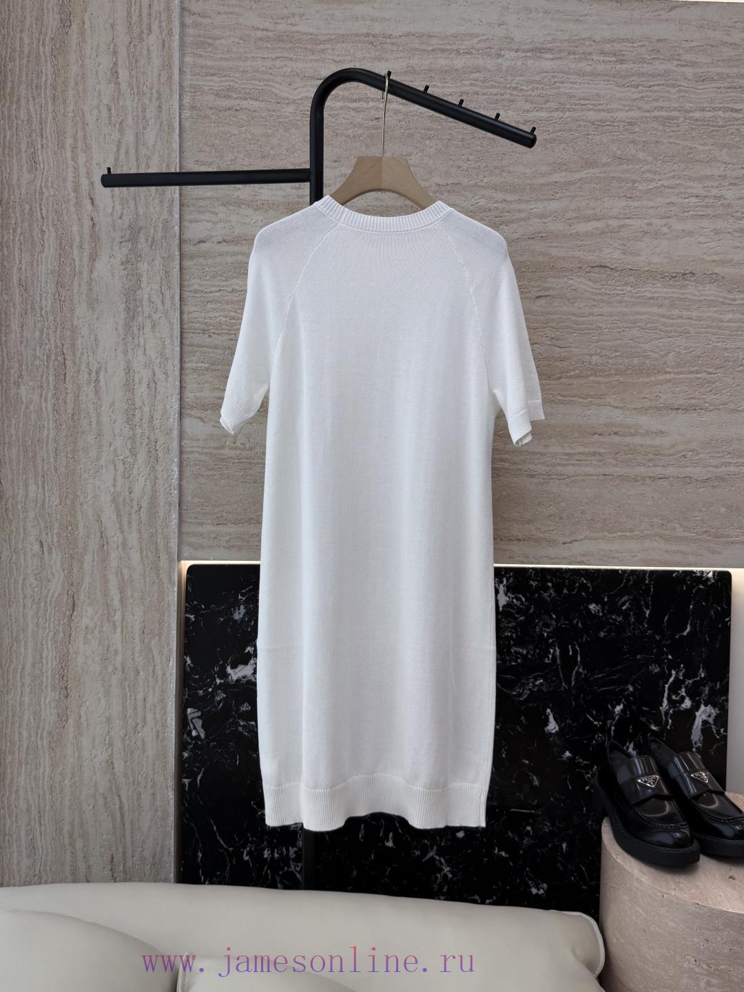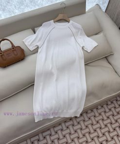 250082 New Knitted Dress BC 100% linen chain short sleeved knitted dress black and white SML