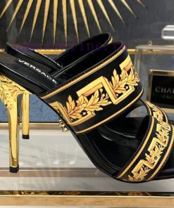 35-42 yards,Versace fashionable high-heeled sandals with cowhide print fabric, inner footrest wrapped in full sheepskin, rubber outsole, heel height of 10cm, slim and sexy, embellishing leg lines, tall and charming