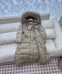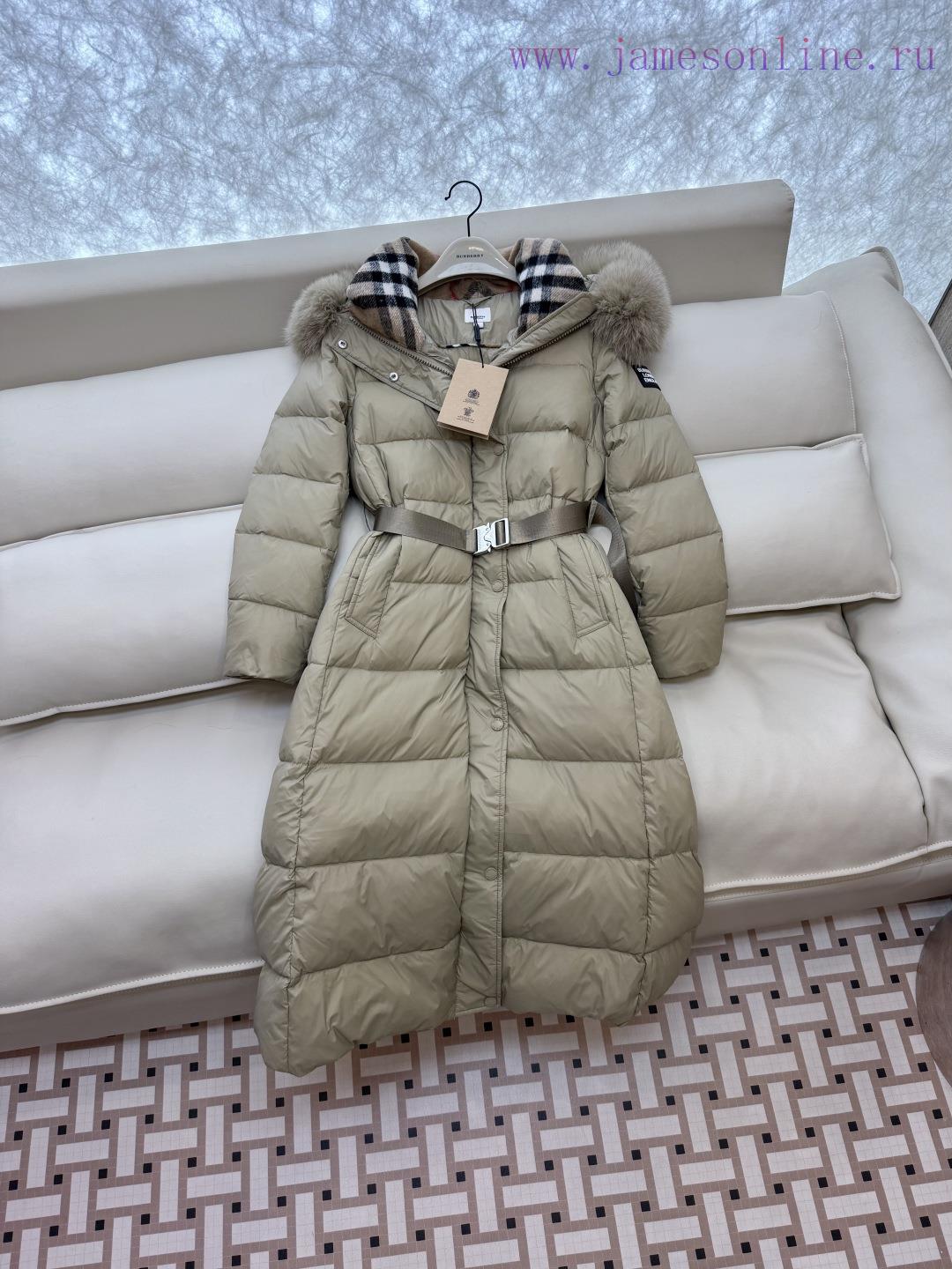 COD-Cash On Delivery Available=Αντικαταβολή Διαθέσιμη=Utánvéttel rendelhetőAH710 new down jacket Burberry detachable fox fur collar long classic 90% white goose down down jacket beige black SMLXL
