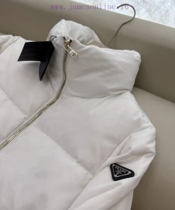 AH721 new down jacket PR triangle logo 90% white goose down stand up collar short style long sleeved down jacket coffee color white black 38-44