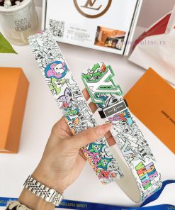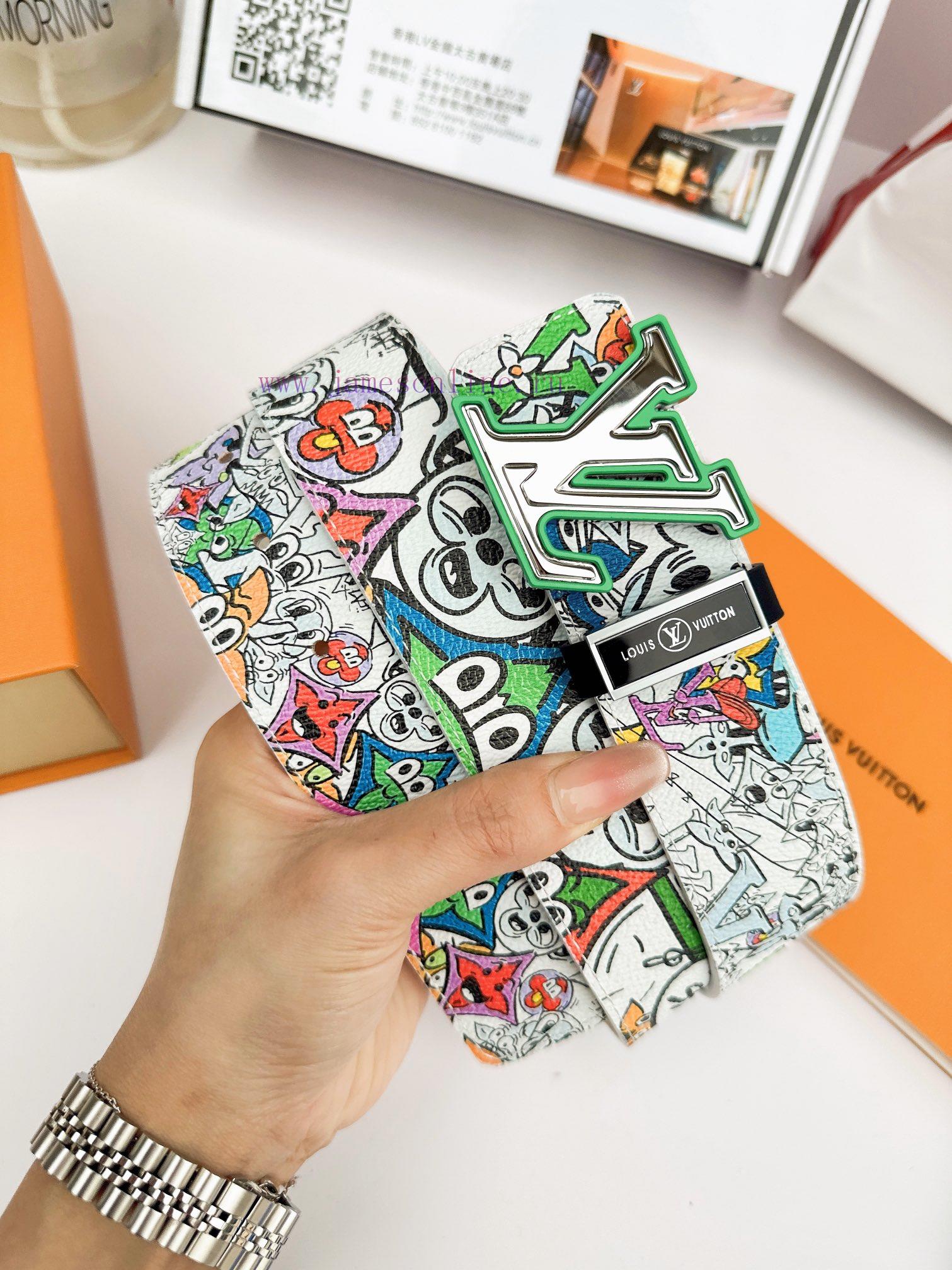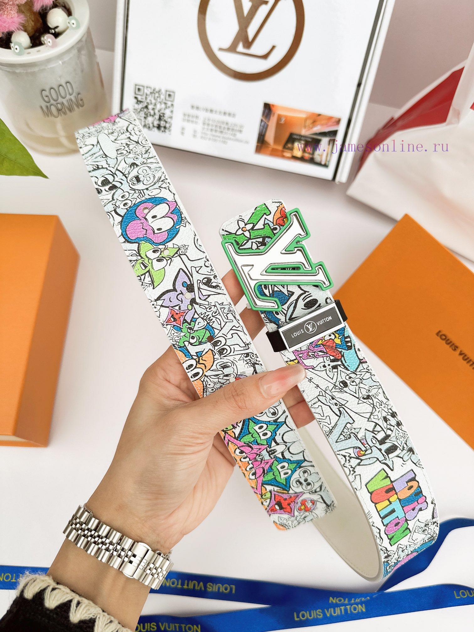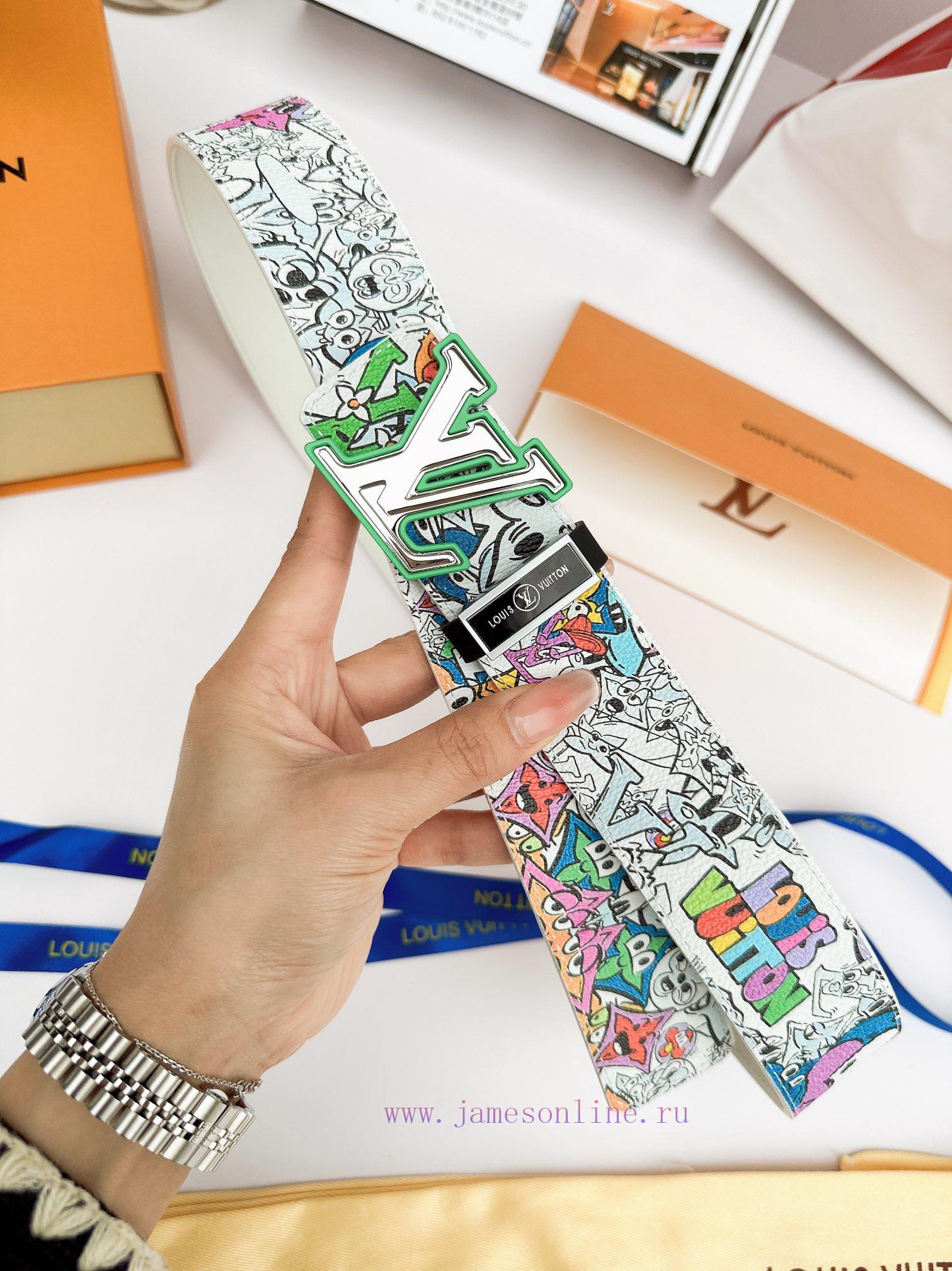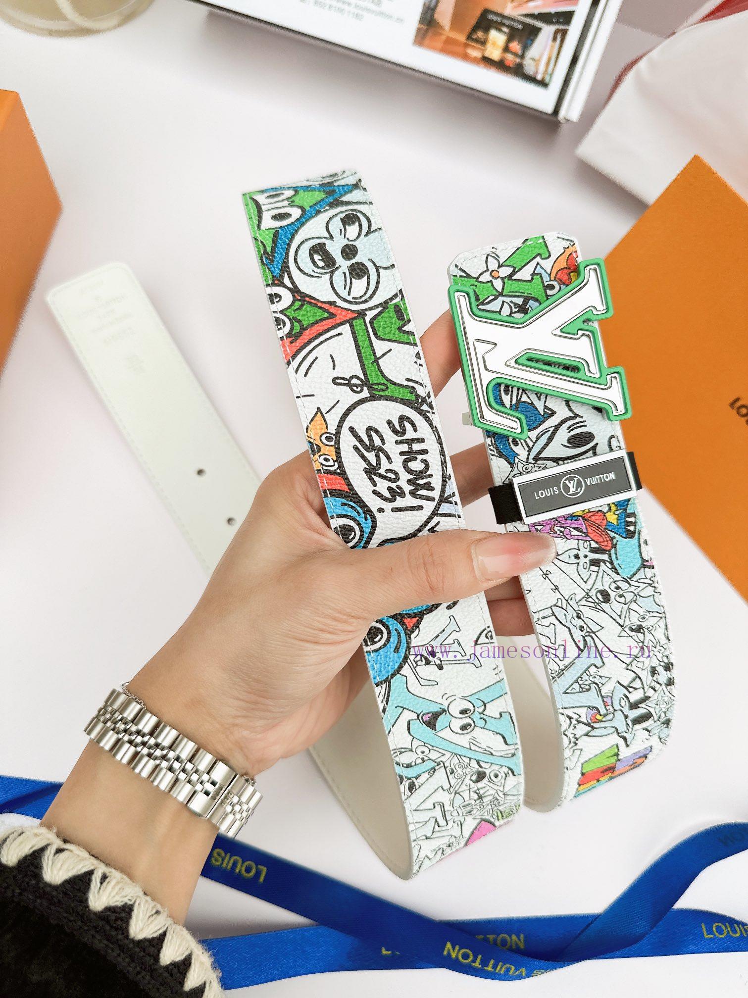 Belt LV Louis ️Belt made of 100% head layer cowhide, guaranteed genuine leather 24k hollow mirror colored frame pure steel buckle graffiti painting art double-sided can be used of equal quality, preferred for personal use as a giftGift punch, UnionPay invoice, width 3.8mm