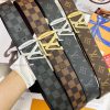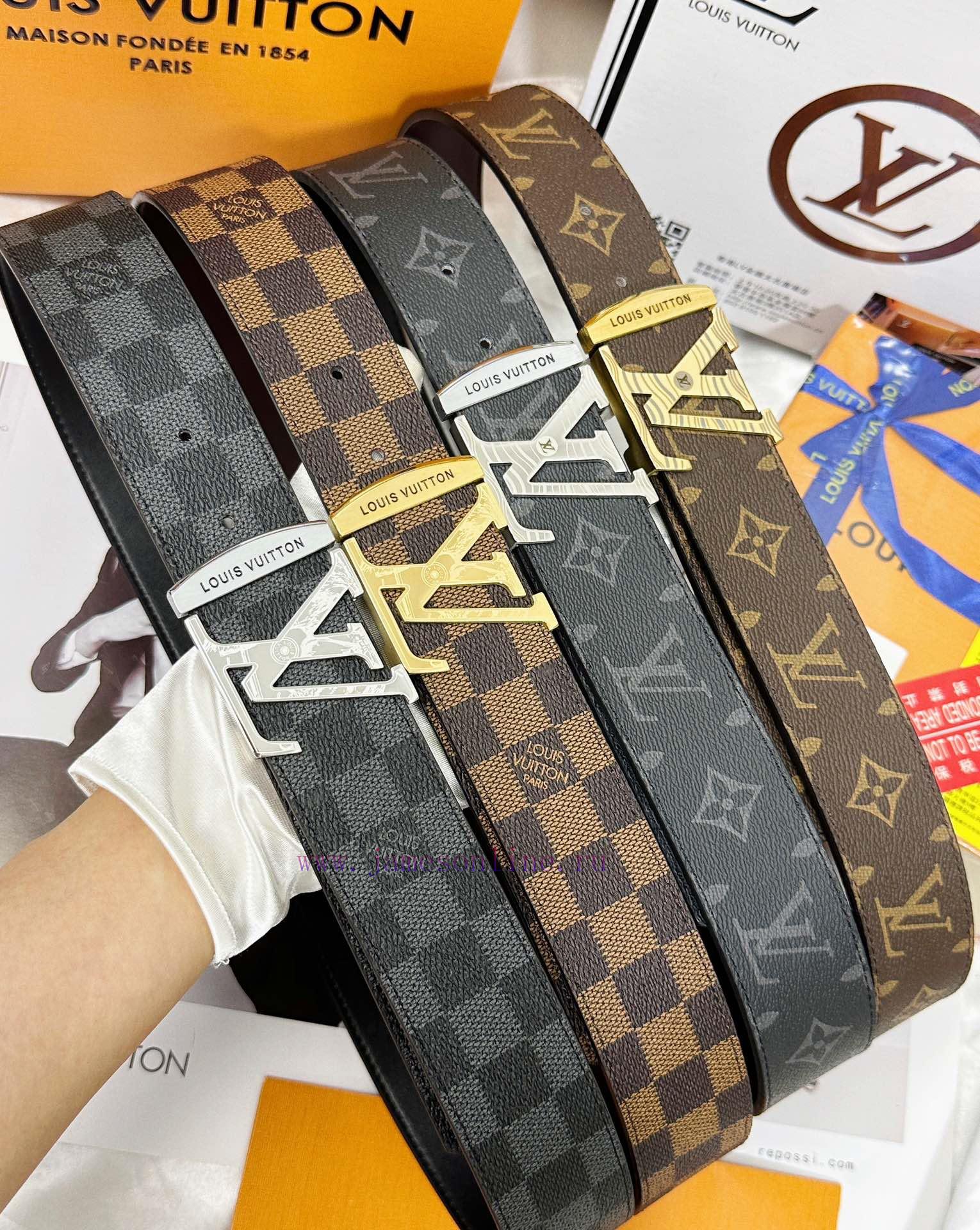 Belt LV Louis Vuitton Top Remakes-The waistband is made of 100% imported top layer cowhide, ensuring genuine leather carving and hollow out craftsmanship Vacuum electroplating Never fade. 24K pure steel buckle layer with old flower, Haige, brown grid, black flower, grid series, eternal classic. Available on both sides with equal quality, it is the first choice for personal useComes with a punch, UnionPay invoice, width 4.0cm