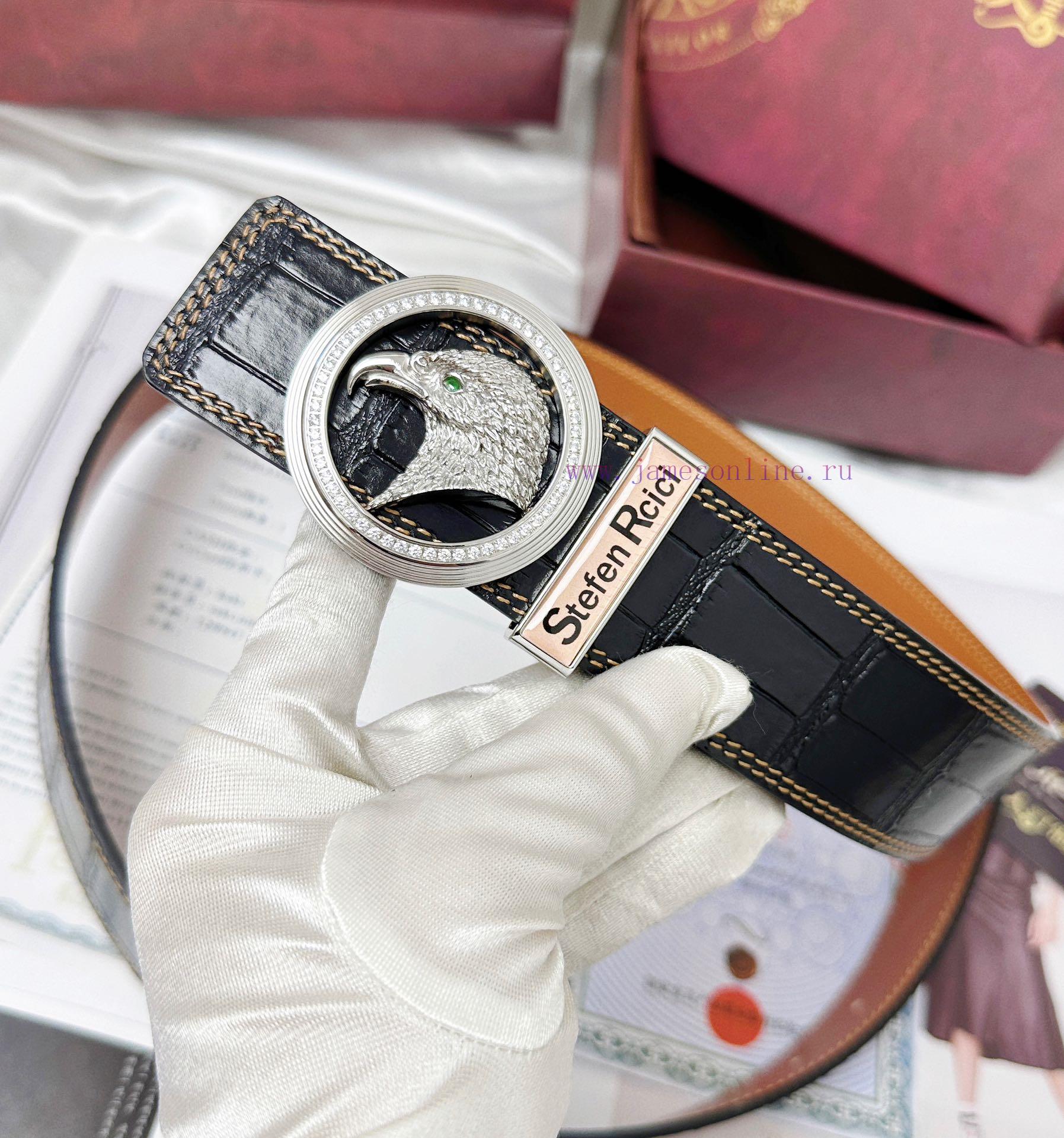 Belt Stefen Rcici Nitz set with diamondsBelt replica Private customized high-end supply versionImported original crocodile skin pattern -24K pure steel material Diamond inlay vacuum electroplating process Eagle Head Sapphire Crystal Design 🦅 Never fade Private customization for limited editionDetail export big brand quality 100% imported original factory top layer cowhide, ensuring genuine leather carving, hollow out and diamond inlay technology Vacuum electroplating Never fade. 24K pure steel buckle material with crocodile leather pattern on the top layer, double-sided dual-use genuine product of equal quality Preferred gift for personal useComes with a full set of gift boxes, including a punch, UnionPay invoice, and a width of 4.0cm