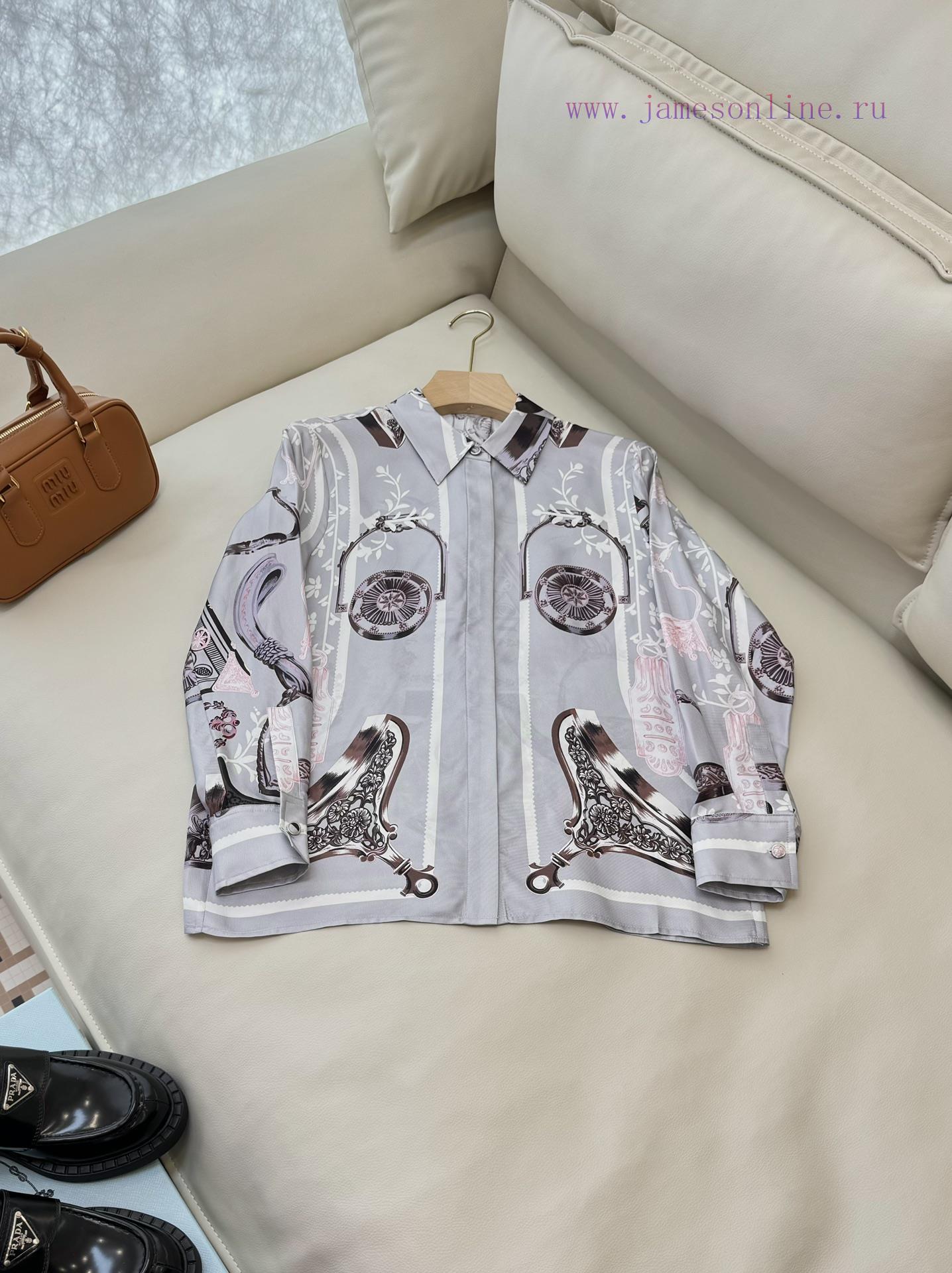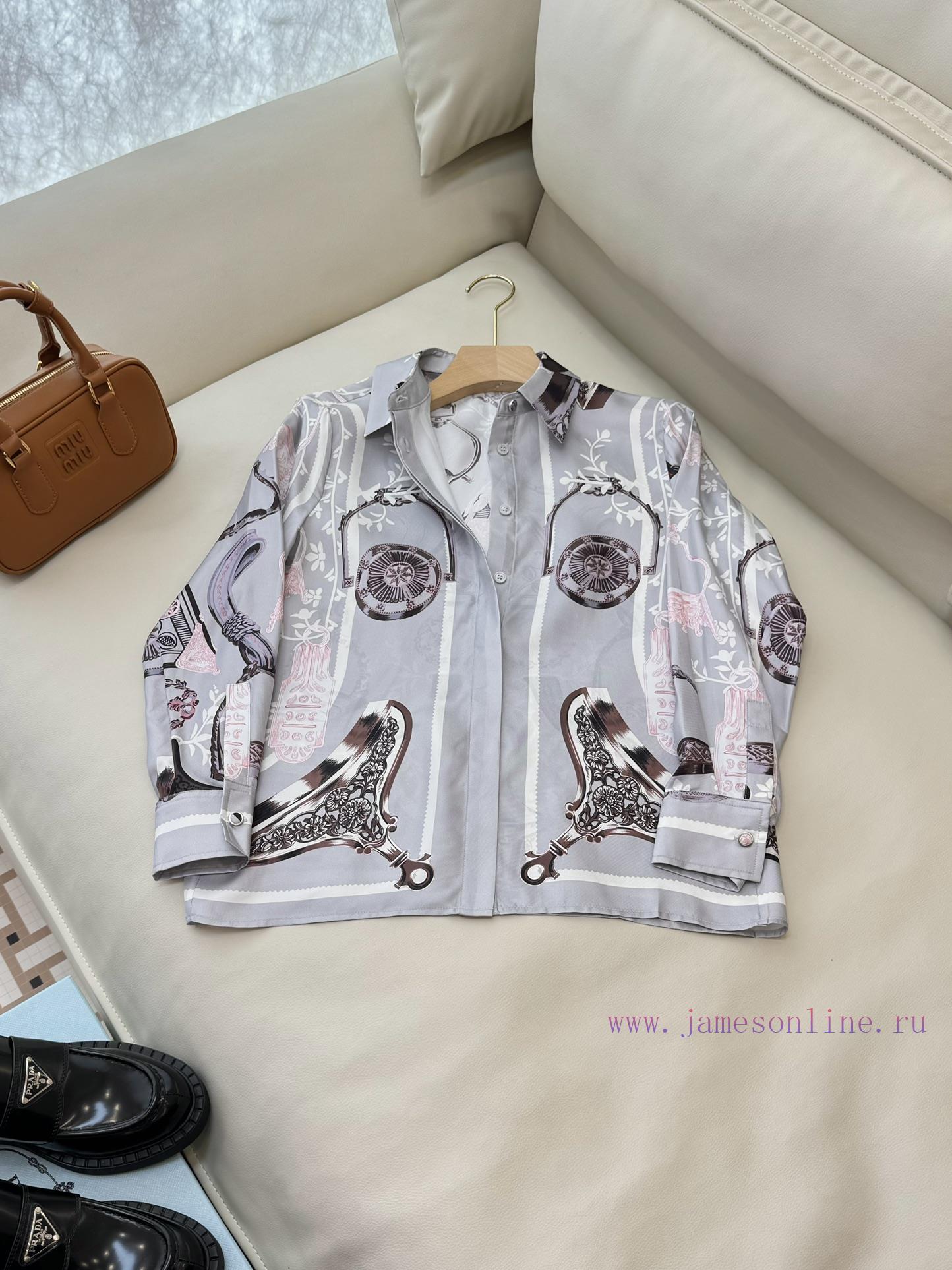 BS0535 new shirt Hermes positioning 100% diagonal silk shirt 36/38/40/42