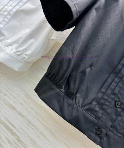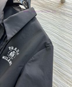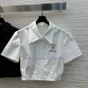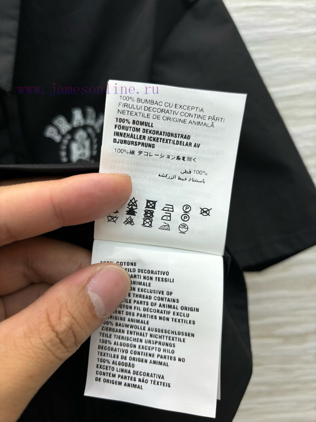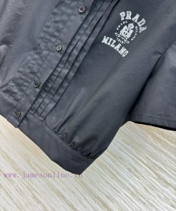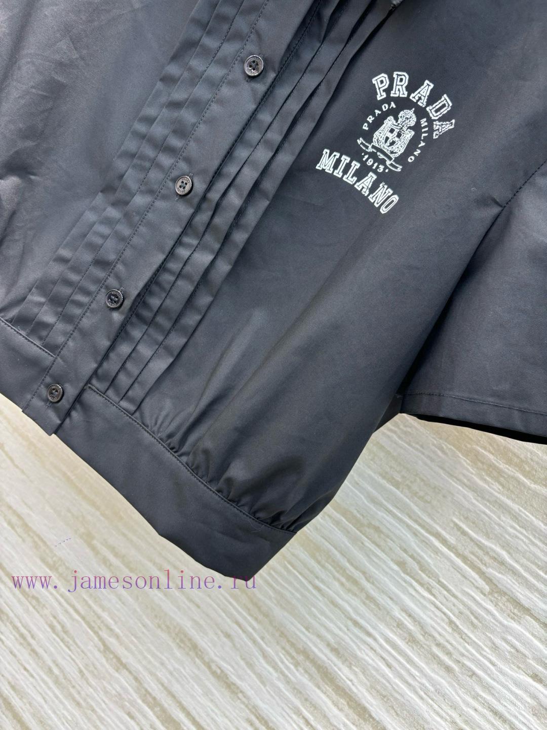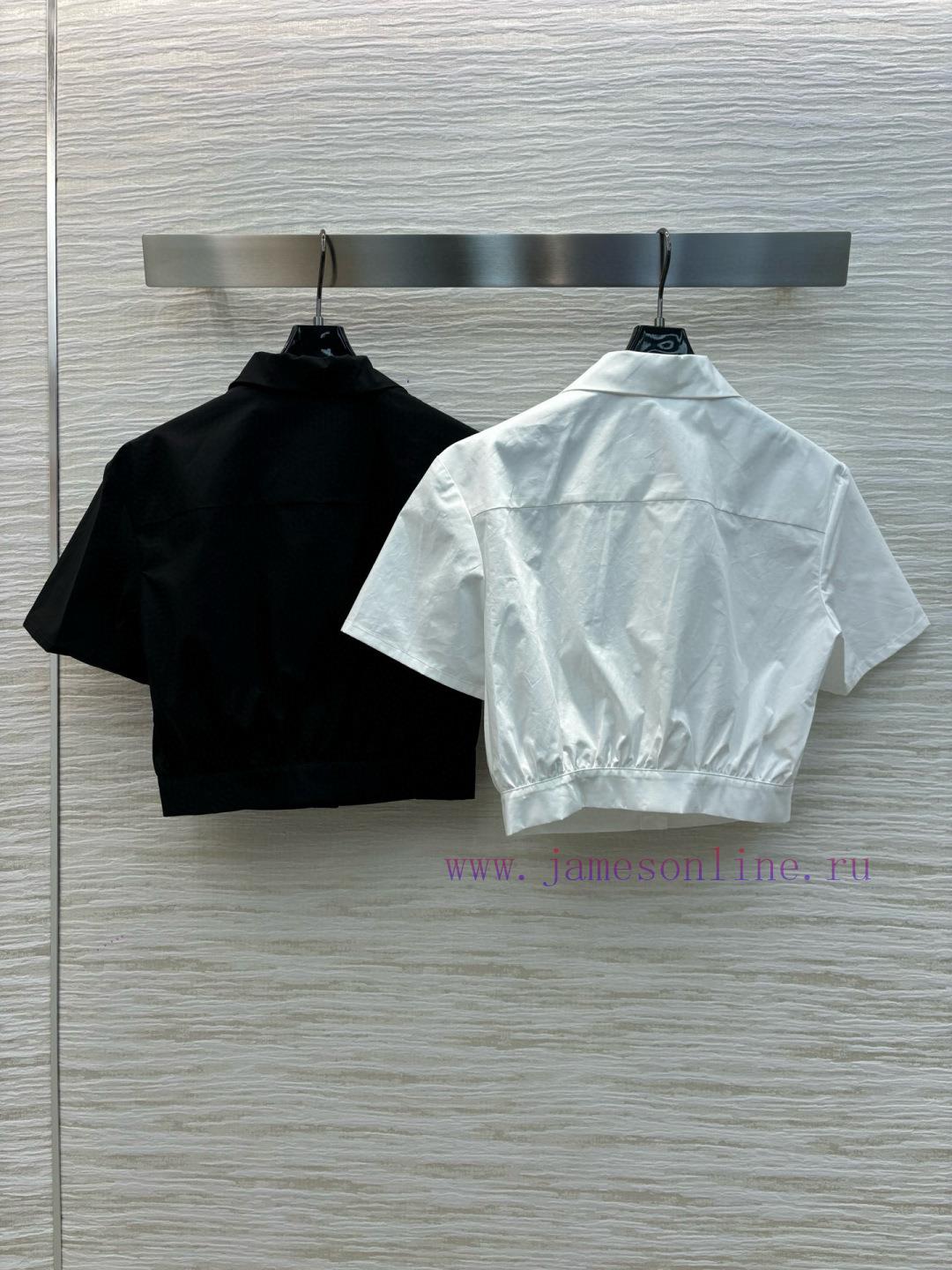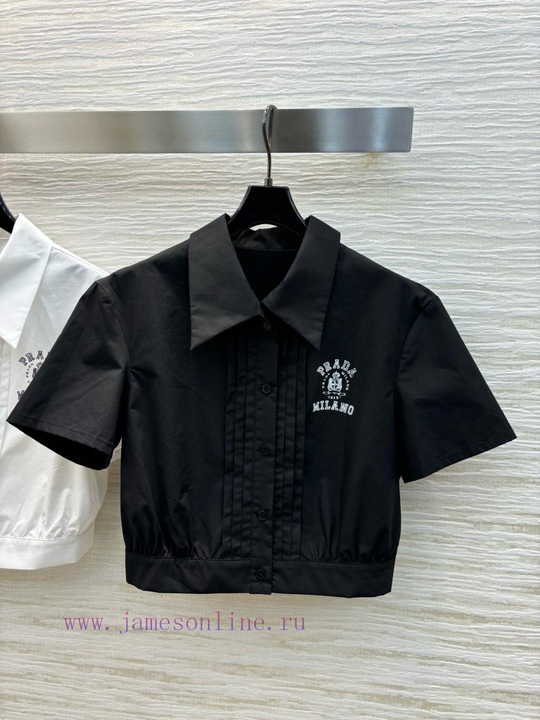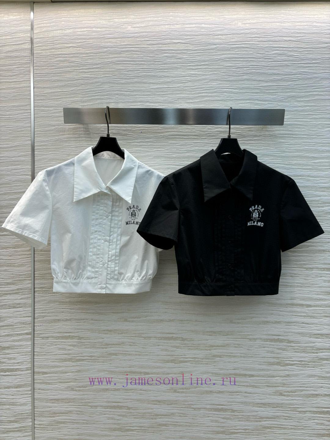 CC77558 Prada 25 Spring/Summer, logo printed pleated short shirt paired with a half skirt, a cool and super a set of small lapel designs, short cut silhouette, contrasting small letters on the chest that are both bold and spicy, all made of pure cotton fabric in one color, SML three sizes