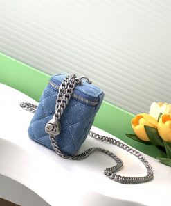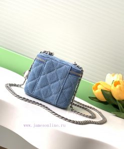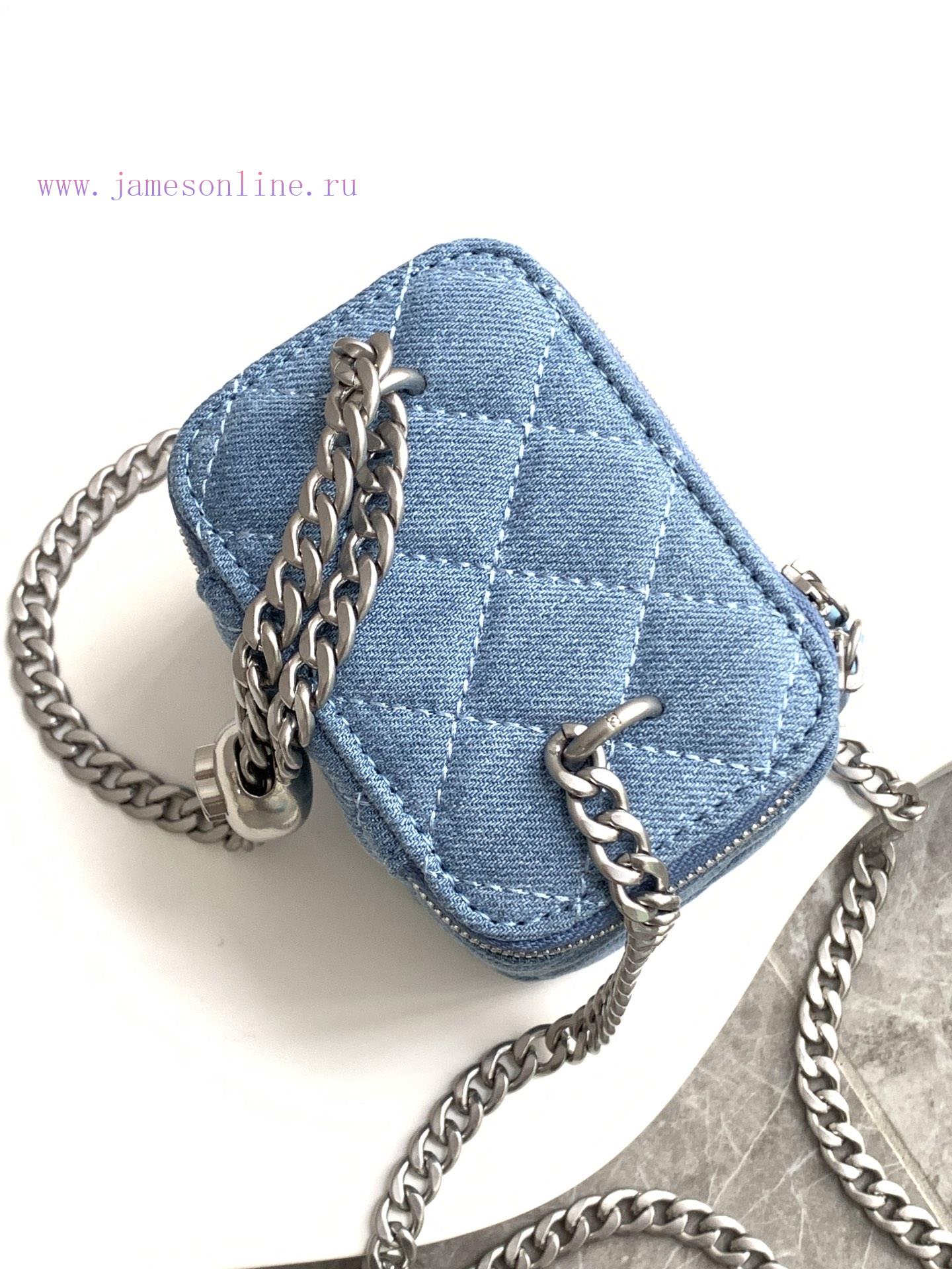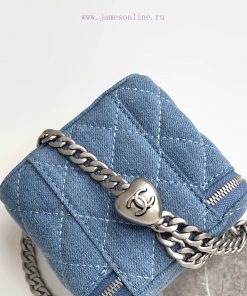 24k box bag denim fabric with the most beautiful heart adjustable buckle and adjustable chain, using double C relief technology logo exquisite and beautifulStyle number A3203Size 11-8.5-7Packaging
