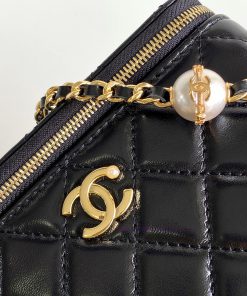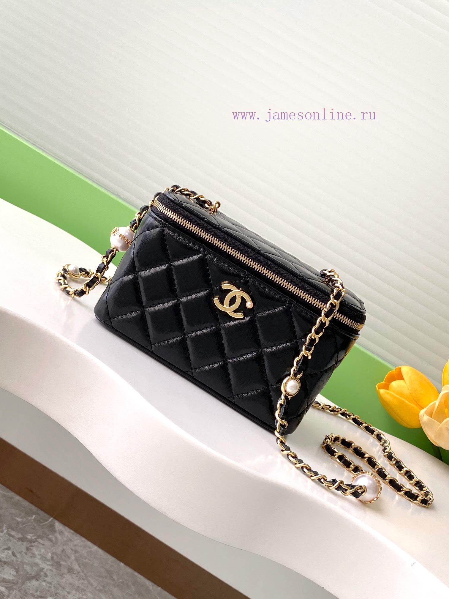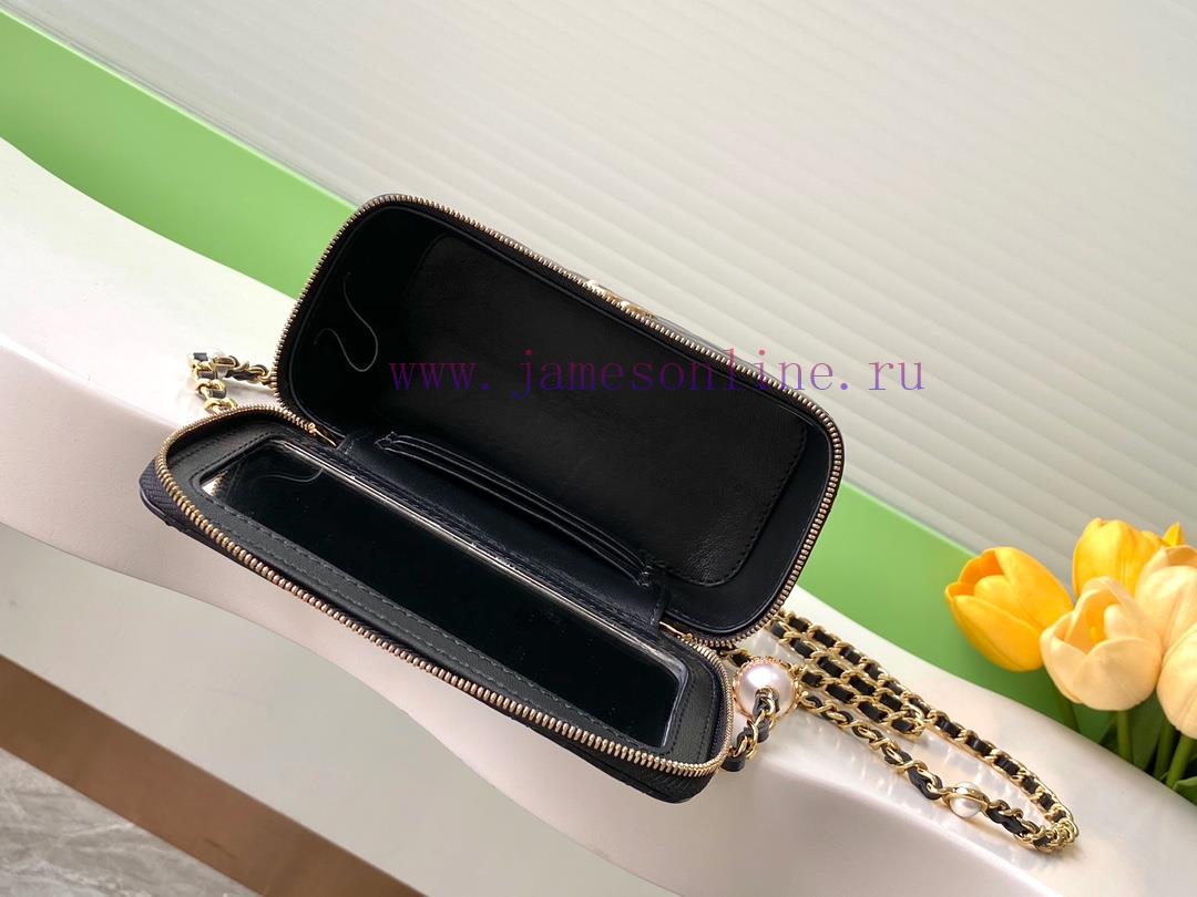 The 24K pearl makeup bag is super luxurious, made of high-quality sheepskin material with excellent glossiness and hand feel. What’s even more attractive is thatThe exquisite craftsmanship of the chain with pearl letters is so satisfying that it really touches my heartStyle number 4285Size 10-17-8PackagingBlack