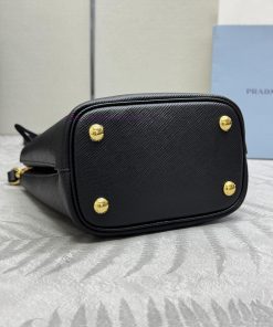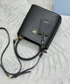 (Comes with a complete set of matching packaging, customized) 1BA217 black inner mini size 🤙🤙 Using imported Saffiano leather material, the detachable shoulder strap leather nameplate and metal logo complement each other. The leather wrapped magnetic buckle buckle closure in the center pocket is Saffiano leather triangle logo contrasting soft sheepskin lining. This Double handbag has an elegant, eye-catching and unique style, and is also a popular item with a length of 17x height of 18x bottom of 10.5cm