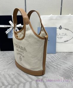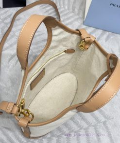 , (complete set of paired packaging, customized), new shopping bag, 1BE074 small trayThis tote bag is made of linen blend fabric, showcasing a fashionable sense of volume and exquisite geometric shape. Its structured design style is small and spacious, with ample capacity. It is embellished with leather details, adding an elegant charm and exquisite details, conveying the spirit of craftsmanship. The front is decorated with embossed letter logosHeight 18cm x Width 21cm x Length 9cm