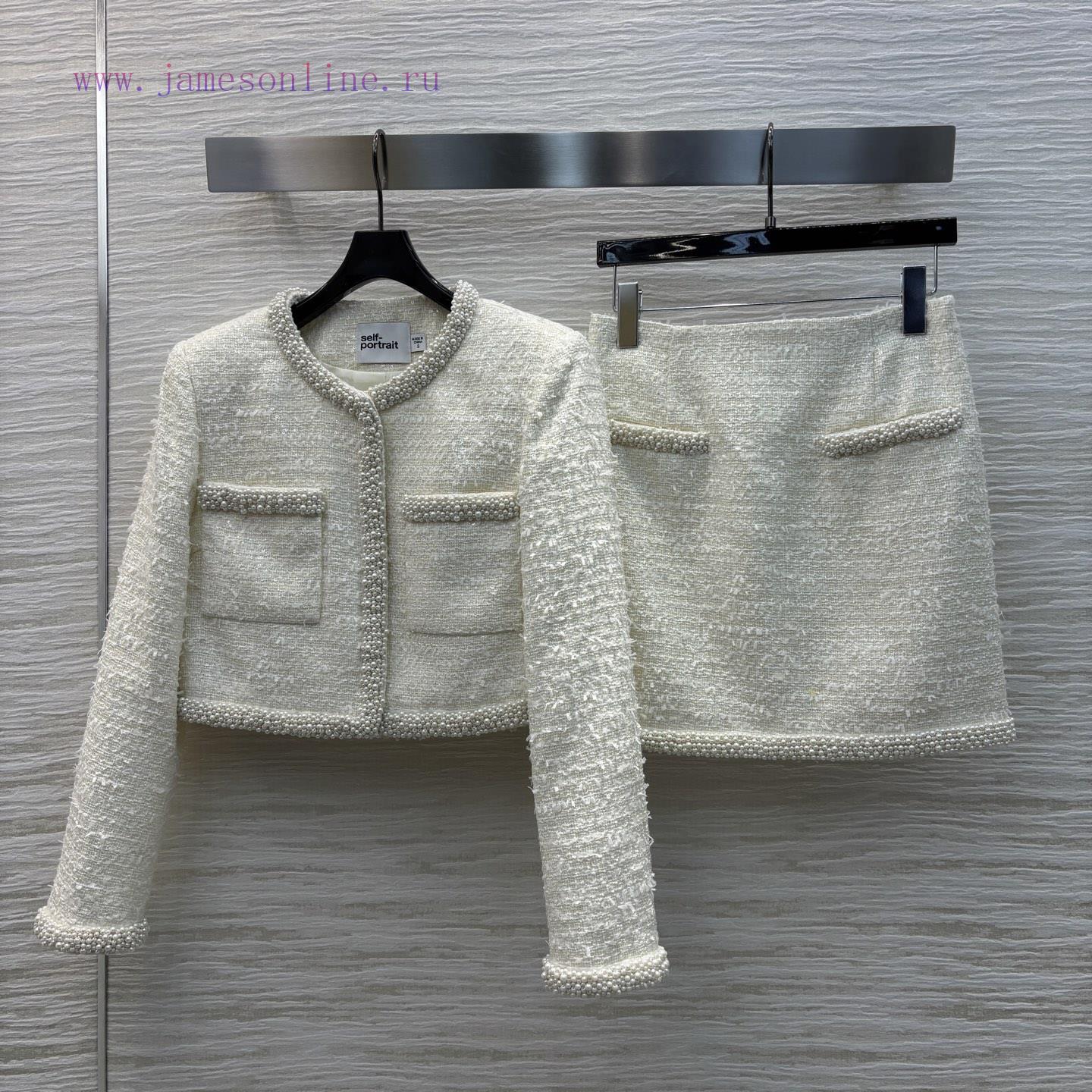 CT76020 niche design 25 early spring new item, Chanel style nail bead round neck short jacket+nail bead high waist short skirt set exquisite and fashionable, three-dimensional slim fit cut matched with high waist short skirt, a set that is perfect for upper body, really too sweet to show off temperament, whether it is daily wear or dating parties can make you the focus. One color SML three size jacket 460, half skirt