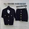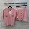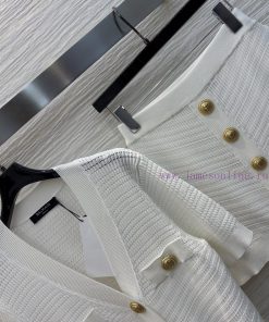 CT77523 Balman 25 Spring/Summer Slim fit V-neck Knitted Set V-neck Short Sleeve Cardigan+Arm hugging Half Skirt, a set without any matching troubles, featuring a retro relief logo gold buckle that highlights the texture of the three color SML top and half skirt. Update Time: April 12, 2025 by TaoChL
