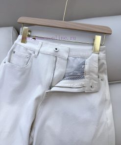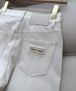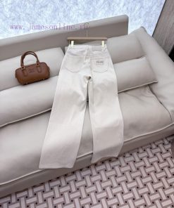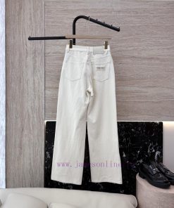 CX0114 new denim jeans Miu Home Letter Embroidered Denim Cotton Stretch Jeans White Blue Size 26-30