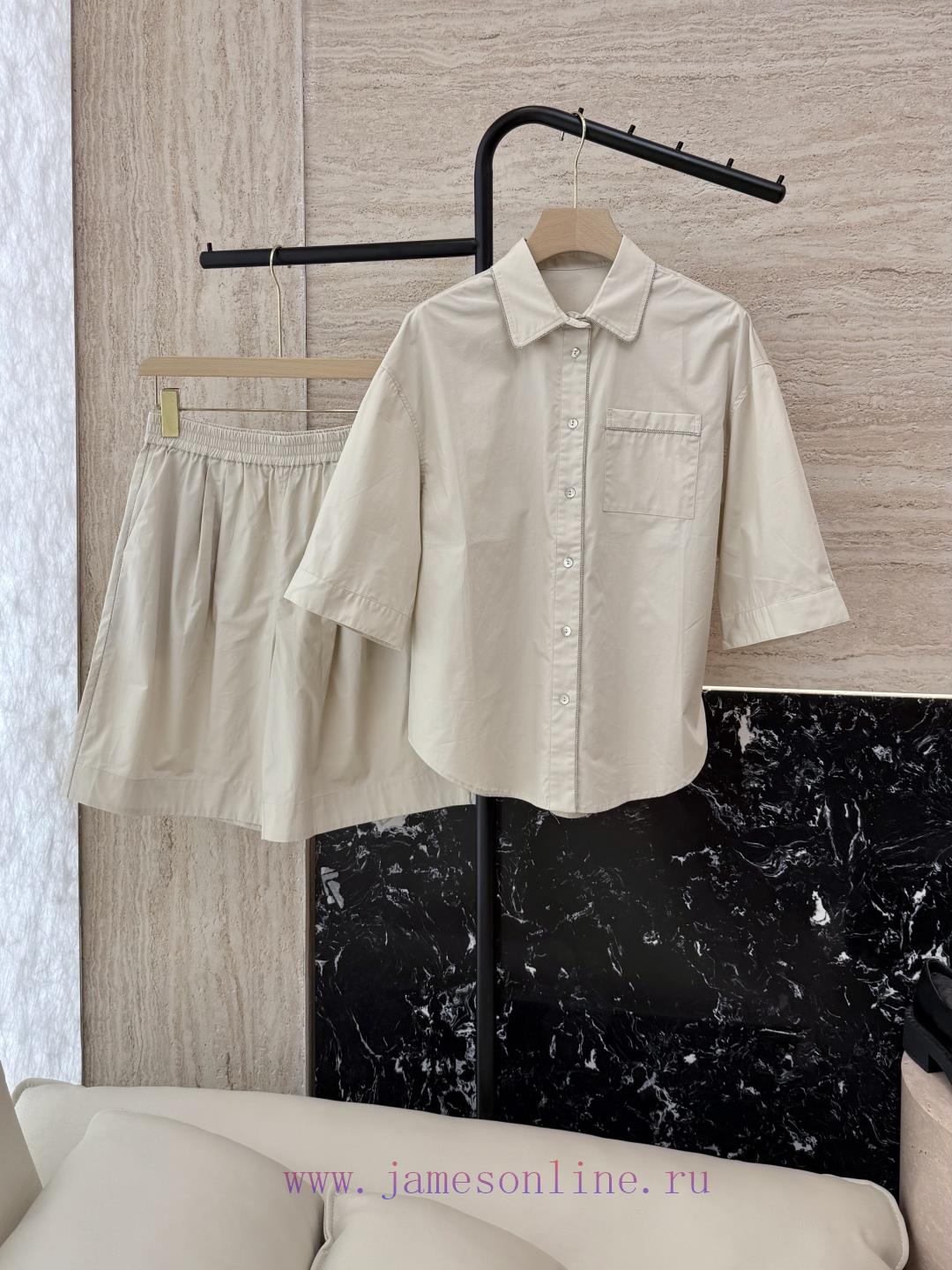 DG010 New Set ️BC Chain Decoration Mid Sleeve Shirt+Shorts Set Apricot Pink SMLUpdate Time: M ijlexbms