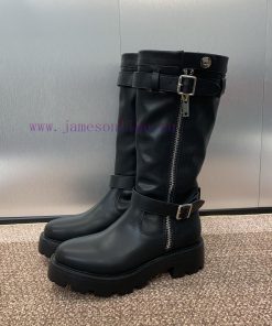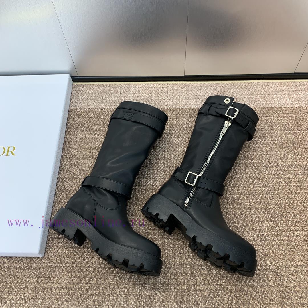Dior 2024 Autumn/Winter New D-Major Series Punk Style Women’s Boots Star Same CD Letter Logo Hardware Belt Buckle Side Zipper Motorcycle Boots Thick Heel Thick Bottom Round Head One Step High Barrel Knight BootsMaterial: Imported full grain calf leather upper+water dyed sheepskin inner footrest+original molded Tpu outsole+original molded hardware buckleBottom thickness 3.5CMSize35-41 standard size 40.41 customized non refundable