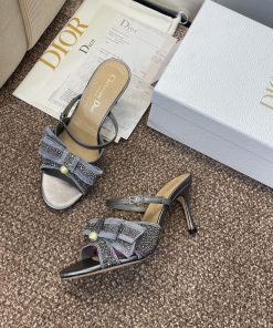 Dior 2025 Spring/Summer Fashion Show New Adiorble Water Diamond Collection Women’s Shoes CD Star Same Style Fashion Tassel Bow Pearl Letter Logo Buckle Round Head Open Toe High Heels Back Air Cool Slippers Top End on the MarketOriginal custom tassel satin upper with Australian imported rhinestones and dyed sheepskin lining, original molded pearl buckle, and Italian leather outsoleUp to 7CM in heightSize34-41 (34.40.41 customized non refundable)