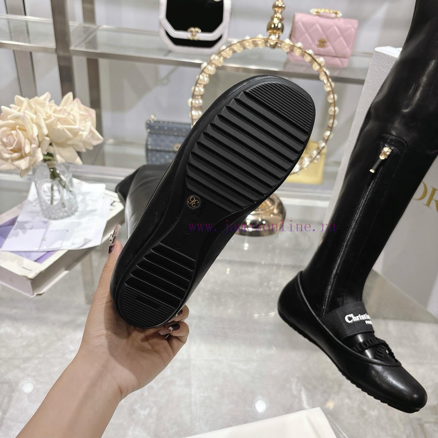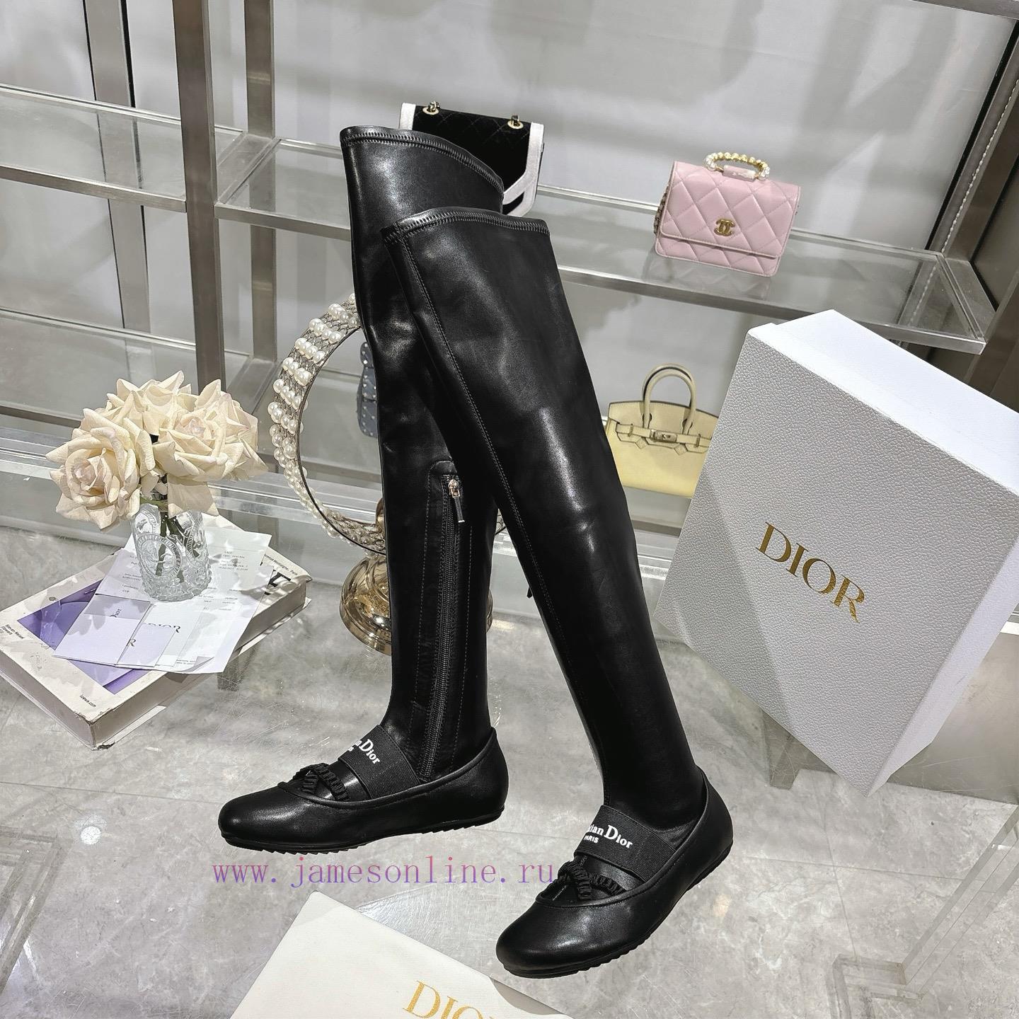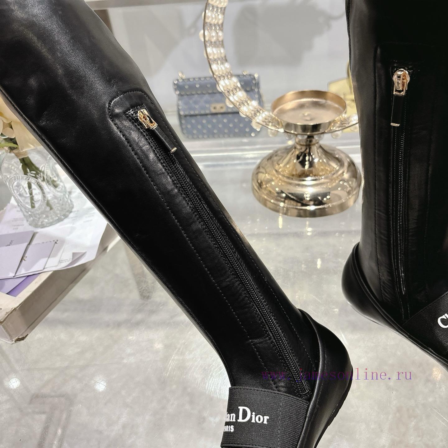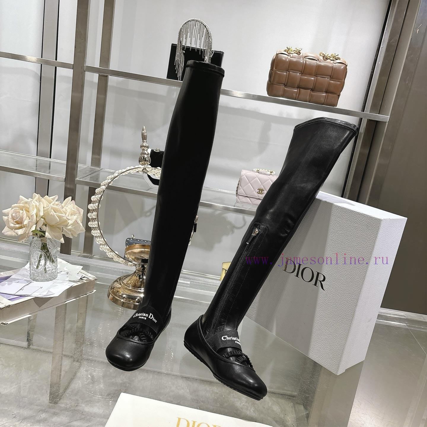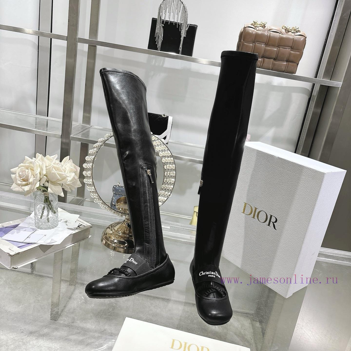 Dior 25 Autumn/Winter New Punk Style Flat Bottom Rubber Elastic High Barrel Knight Women’s Long Boots Star Style Embroidered Letter Logo with Zipper Design on the Inside for Convenient and Comfortable Feet, Tube Length 22 inchesMaterial: Imported elastic microfiber splicing sheepskin, water dyed sheepskin lining, and anti slip rubber outsoleSize34-4134.40.41. Customization Non Return/Exchange)