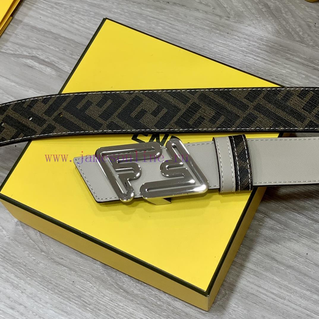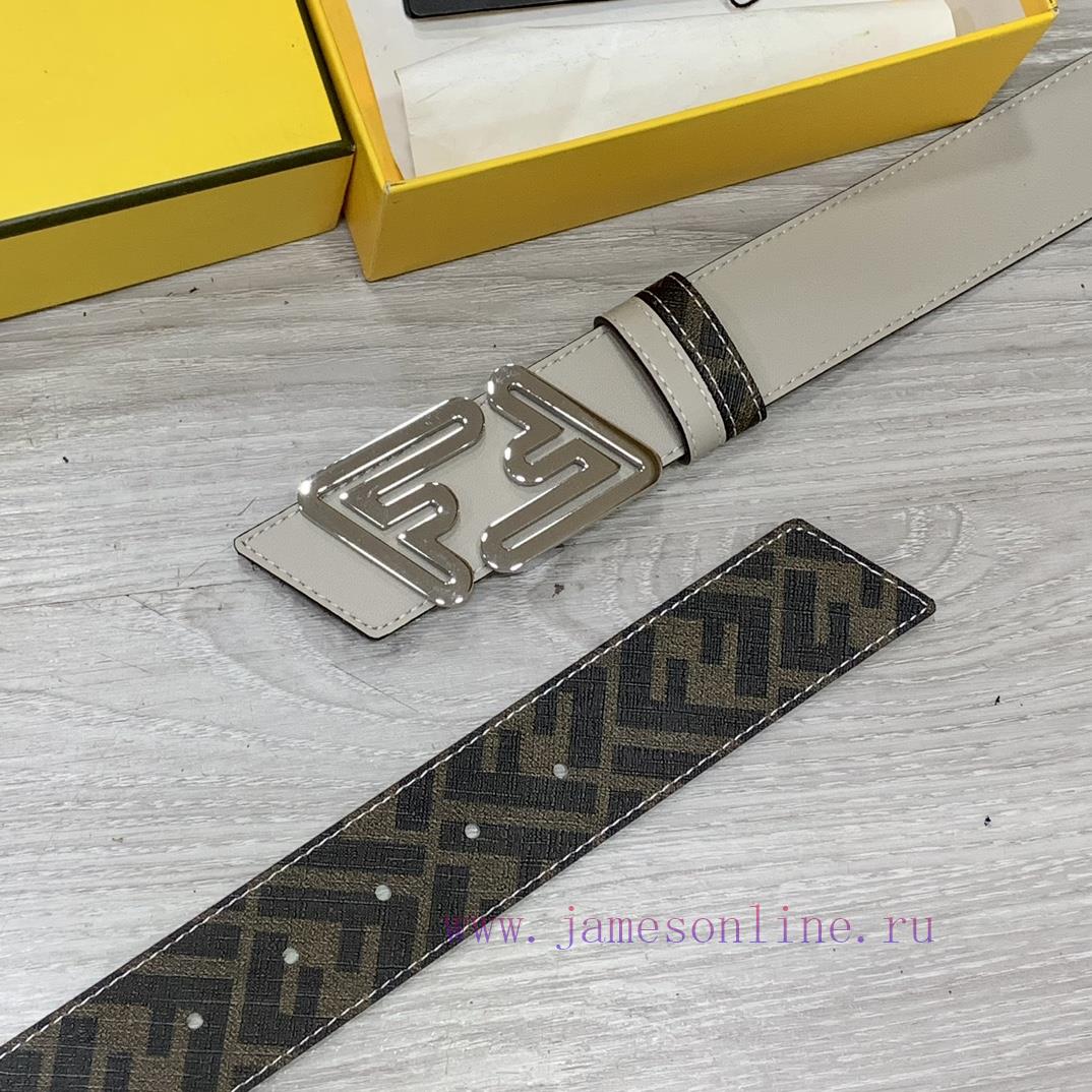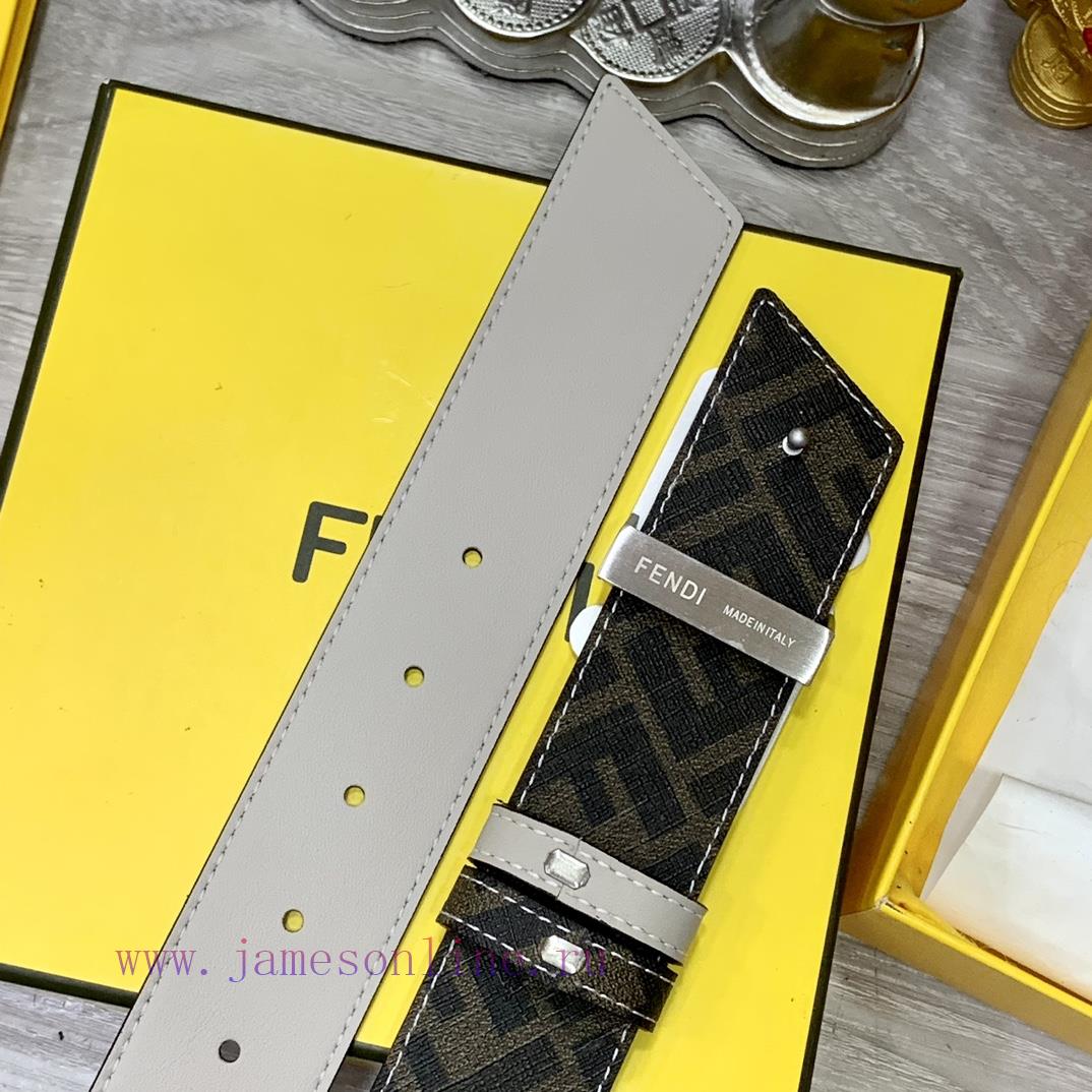 FENDI style with width of 4.0CM, double ring front and back waist belt, FF nail buckle, dual color Cuoio Romano leather material, back fabric with tobacco yellow and black FF pattern, black enamel metal finish, fashionable, classic and versatile