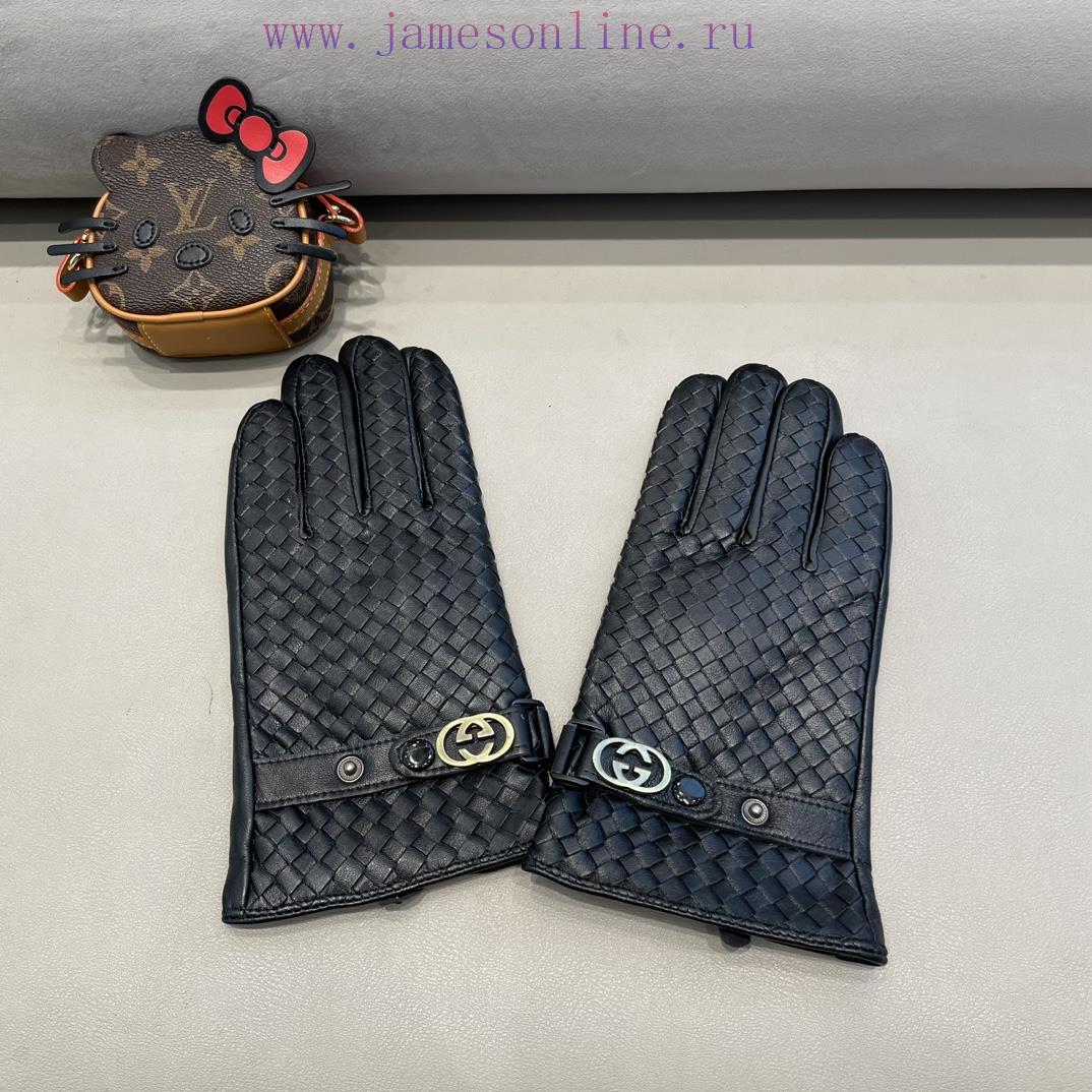 Gucci men’s woven sheepskin gloves, thin leather, mobile phone touch screen, high-end imported cycling motorcycle leather gloves, autumn and winter