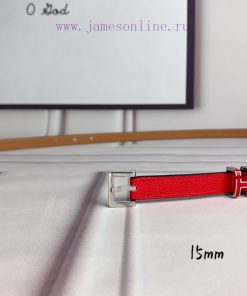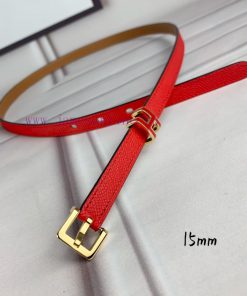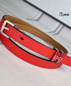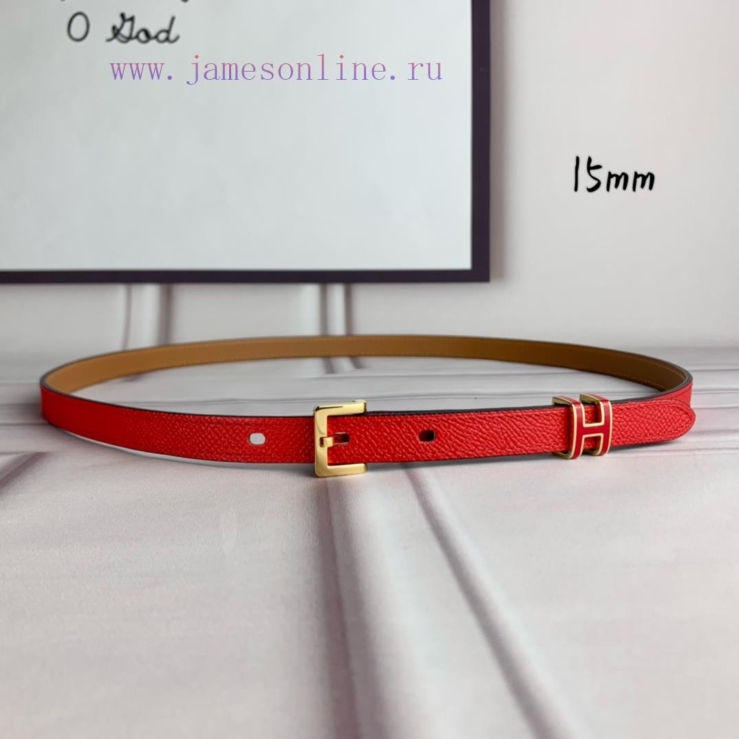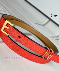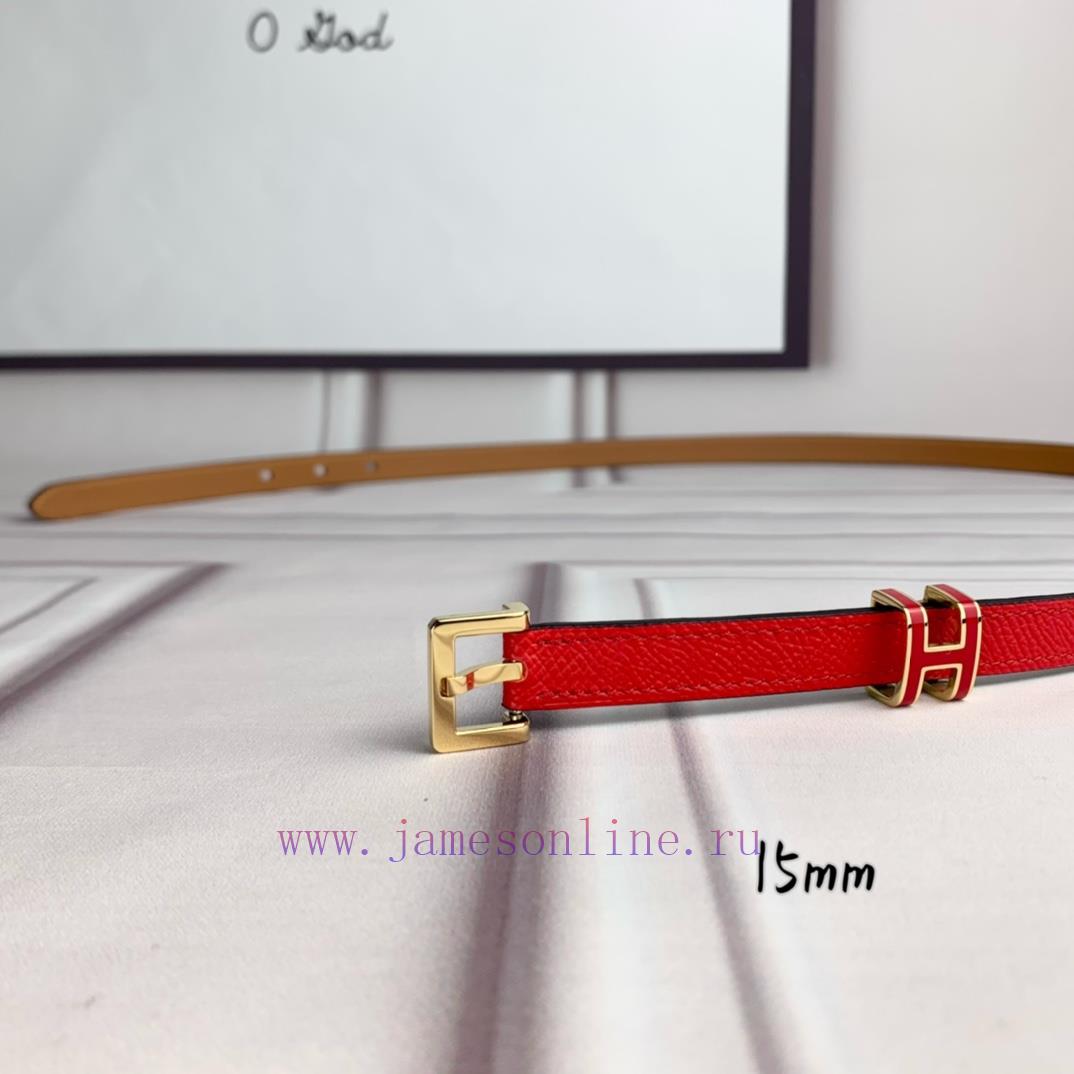 Herm è s Women’s Needle Buckle Belt Imported Head Layer Leather Red Palm Pattern Surface with Earthly Yellow Original Bottom 15mm Width Paired with Premium Gold/Silver Steel Buckle