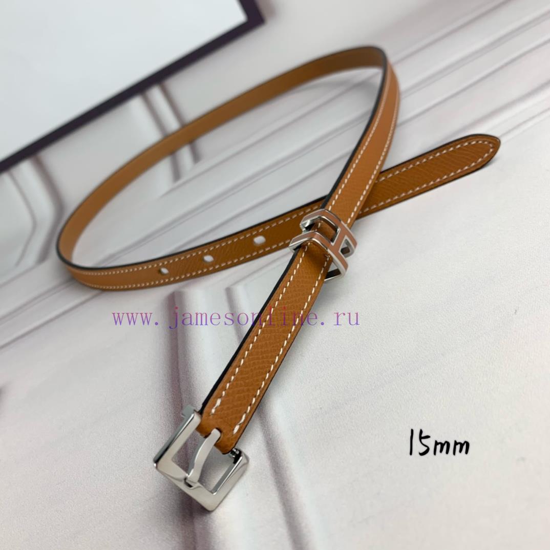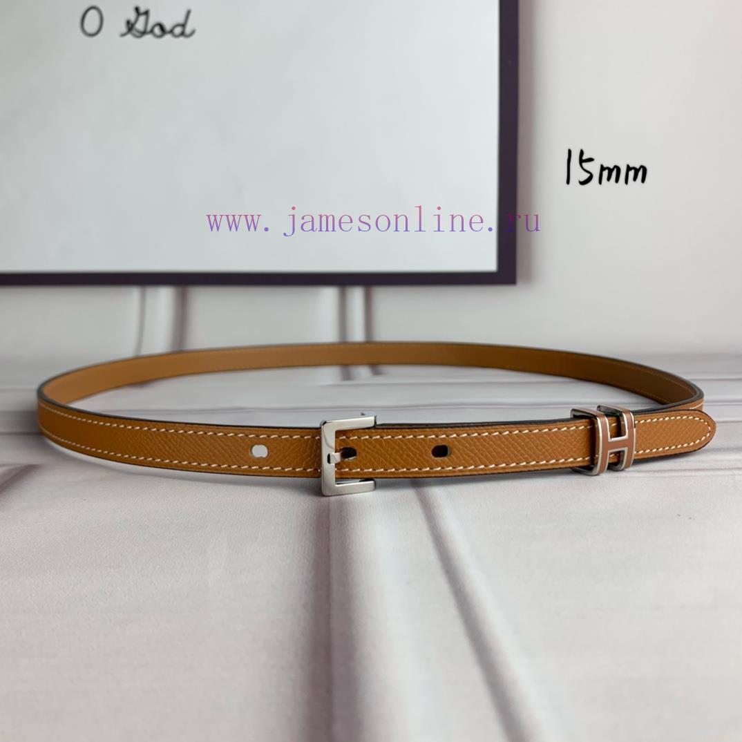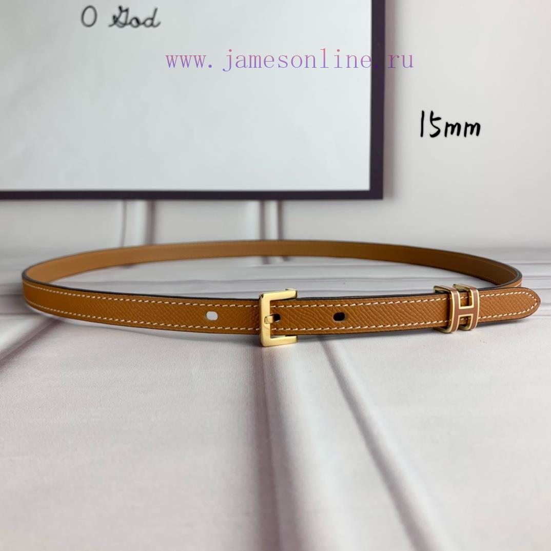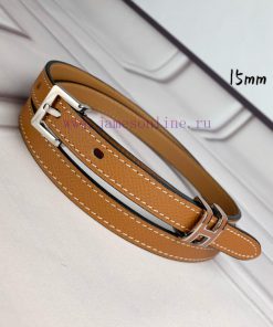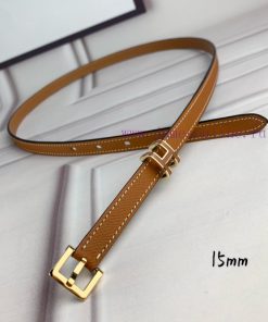 Herm è s women’s needle buckle belt imported top layer cowhide, earthy yellow palm pattern surface, matched with earthy yellow original base 15mm wide, exquisite gold/silver steel buckle