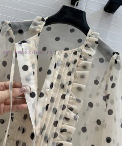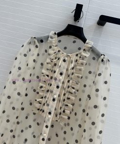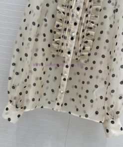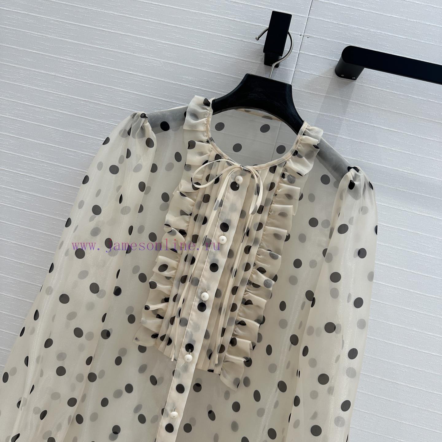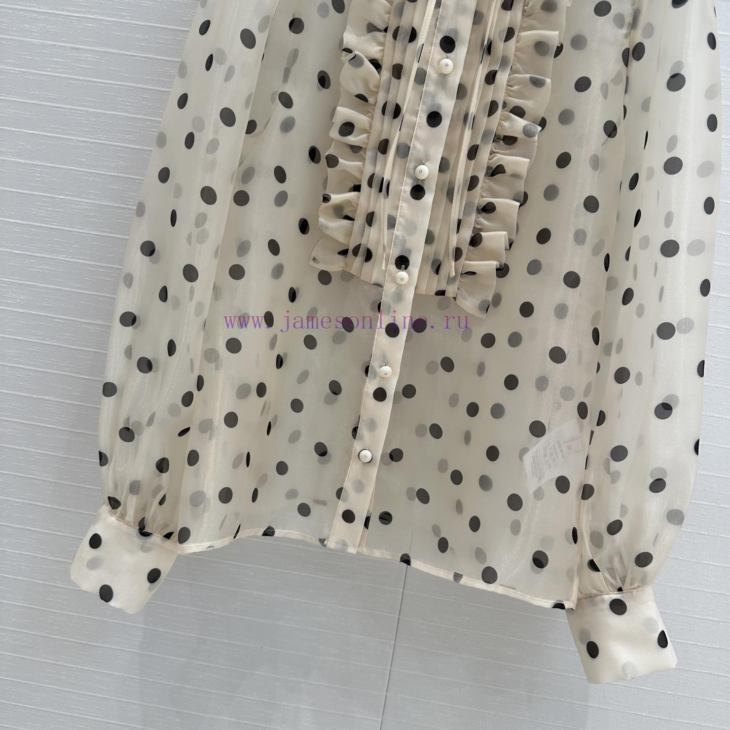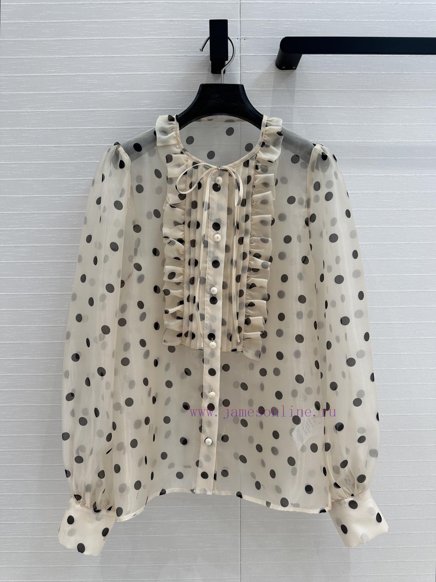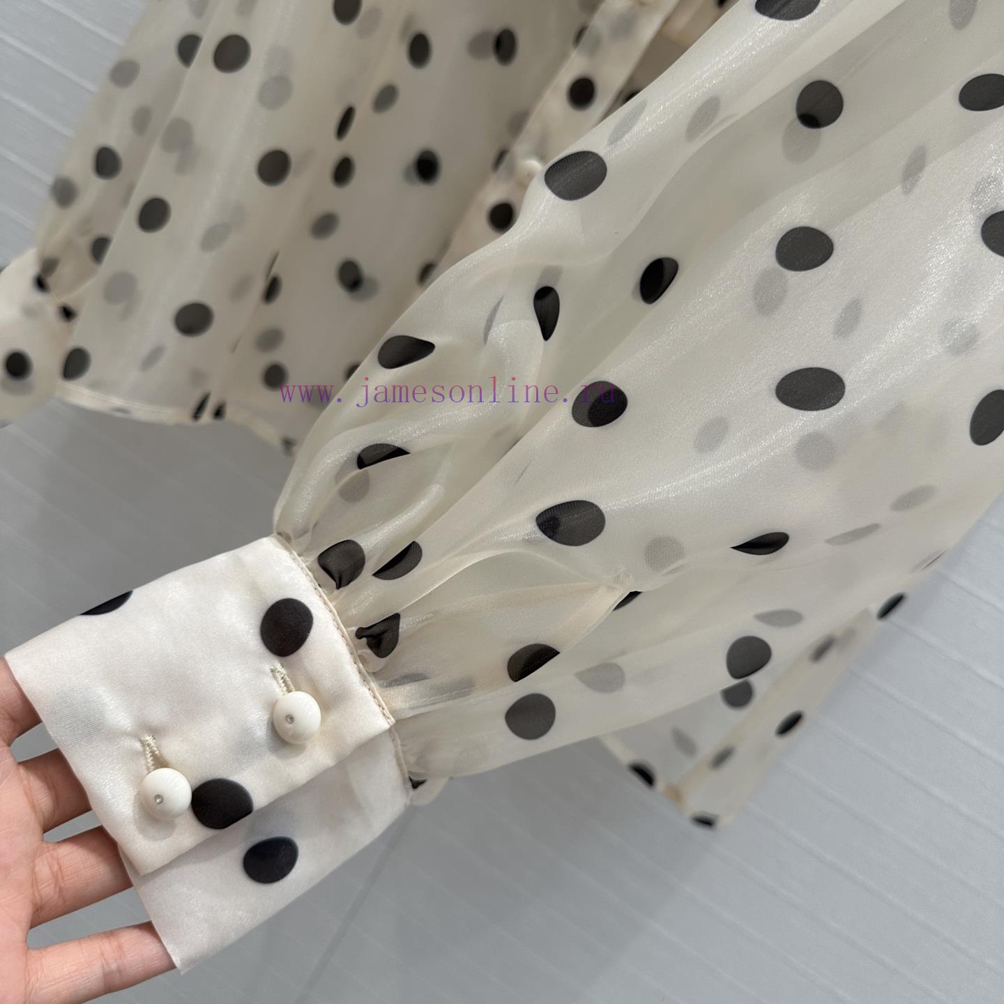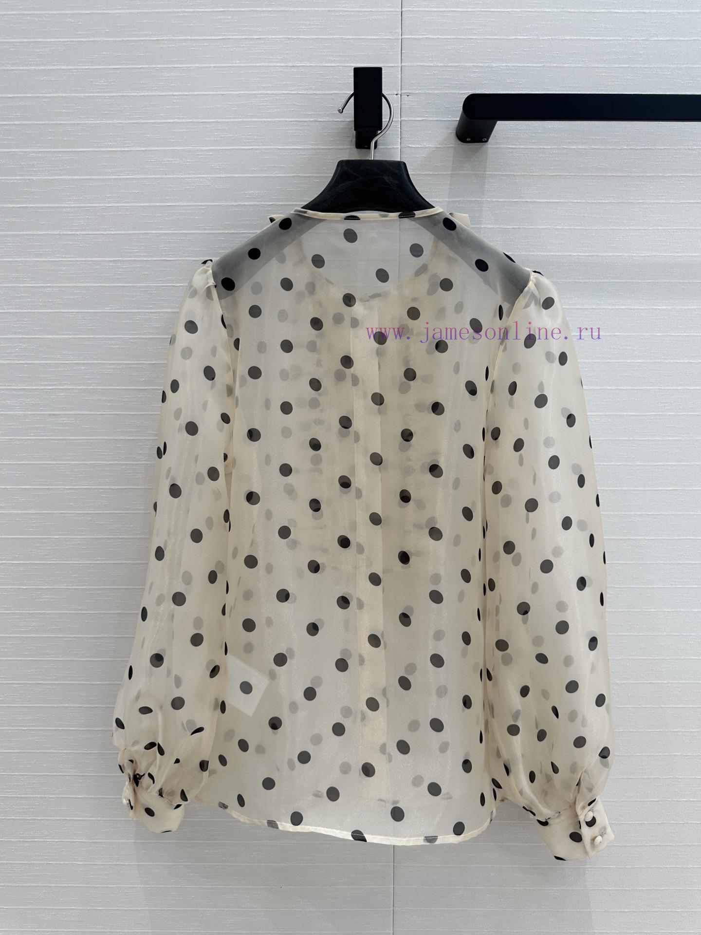 High end BC76095 V series socialite wearing retro palace style lantern sleeves with polka dot silk shirt temperament, creamy yellow high-end and sweet pleated lace collar and tie design, can be sweet or salty classic version, versatile and elegant, not picky on the body, elegant and sweet original diamond button perfect workmanship quality looks at details, one color S.M.L three sizes in stock, S size, shoulder width 35, chest circumference 96, length 65. Each size has a bust difference of 4, shoulder width and length difference of 1. Update Time: March 6, 2025 by TaoChL