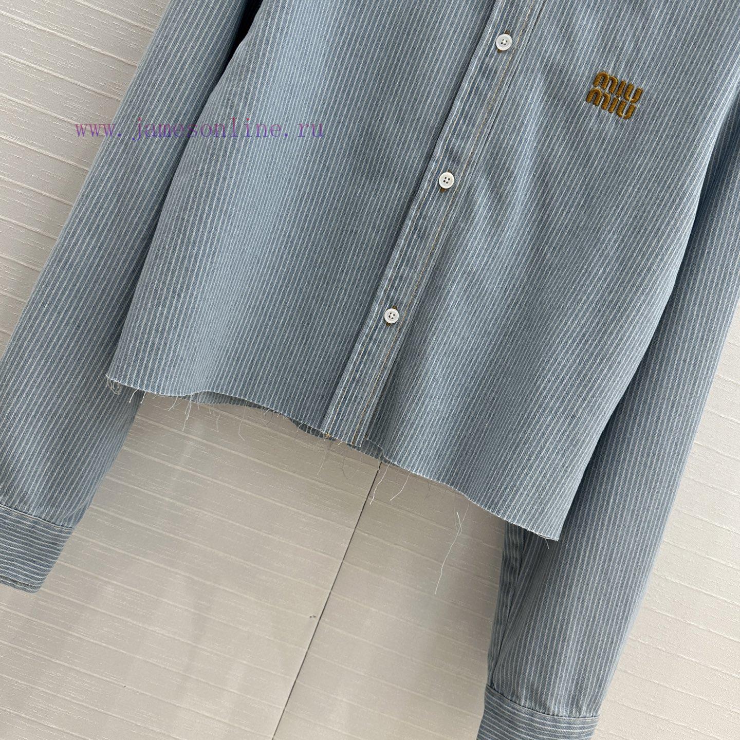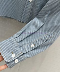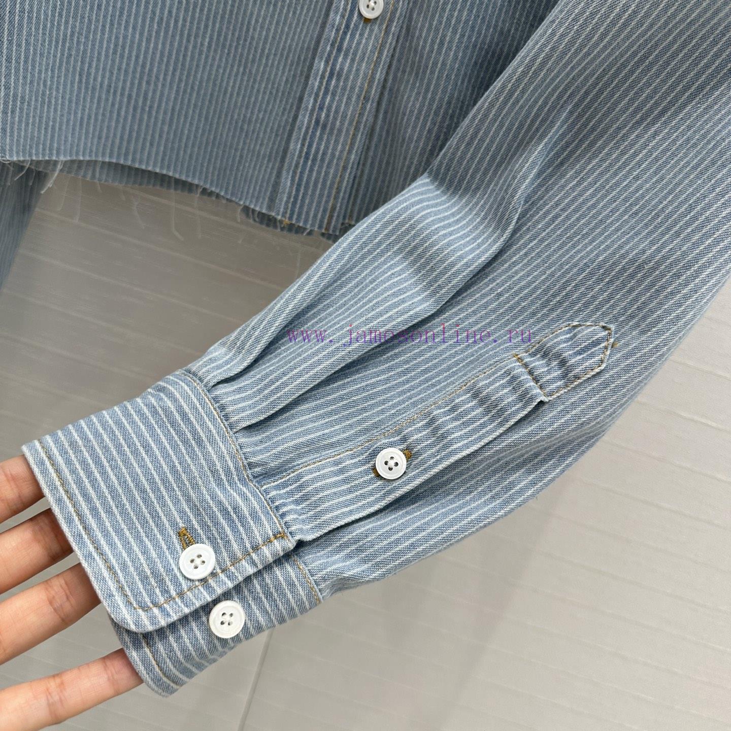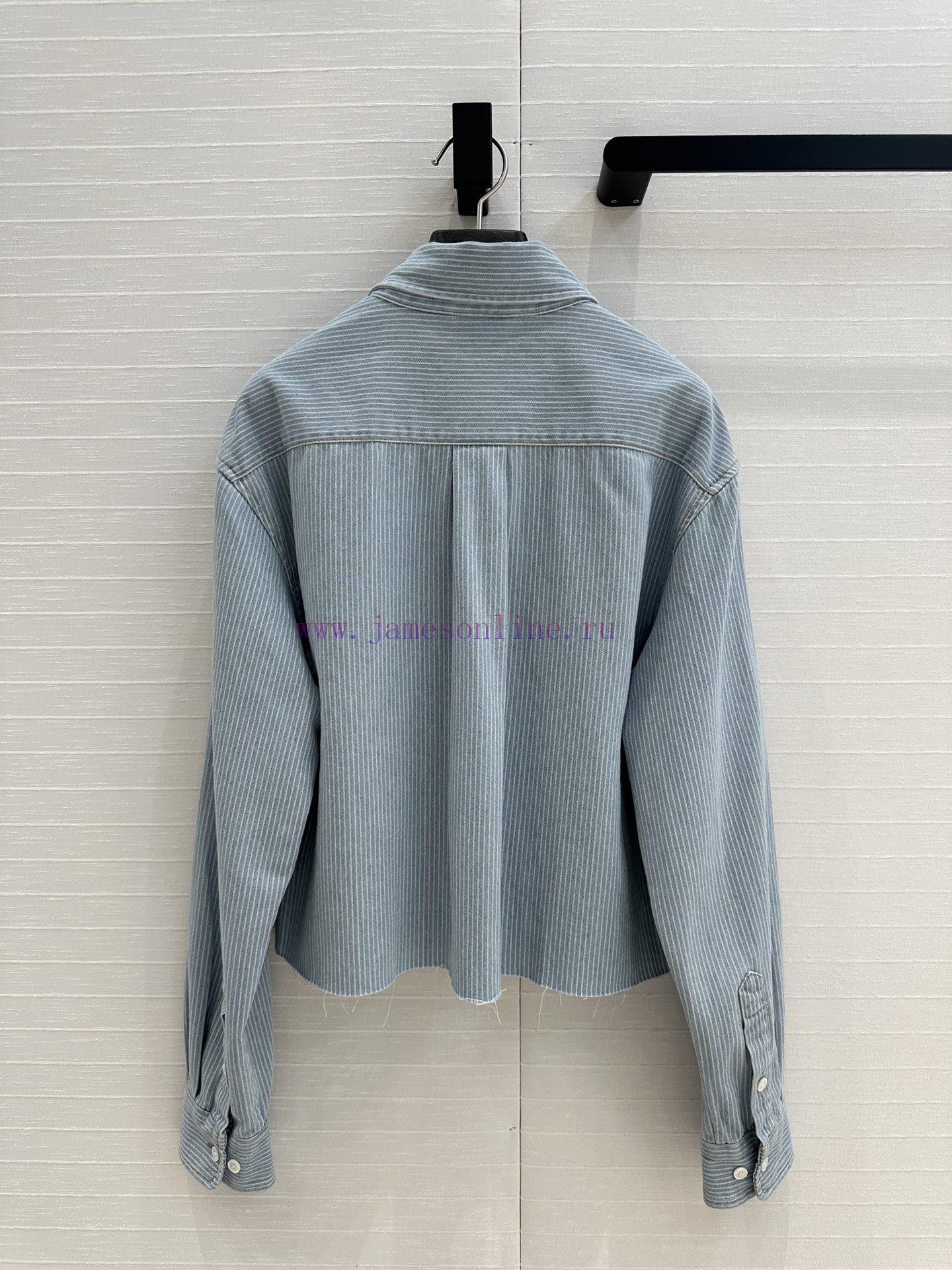 High end quality, BC77580 mi * 25 Spring/Summer New Product Pre release Series Light colored washed striped denim short shirt with unique edge washing technology, brown embroidered letter logo, low-key luxury, original custom color woven striped imported washed denim soft and delicate texture, super loose small short version, huge upper body, slim, sweet and salty temperament, age reducing girl style, versatile and not picky workmanship quality, look at details in stock, SML three size large order thrown over S size, shoulder width 47, chest circumference 116, clothing length 51, chest circumference difference of 4 per size, shoulder width and clothing length difference of 1