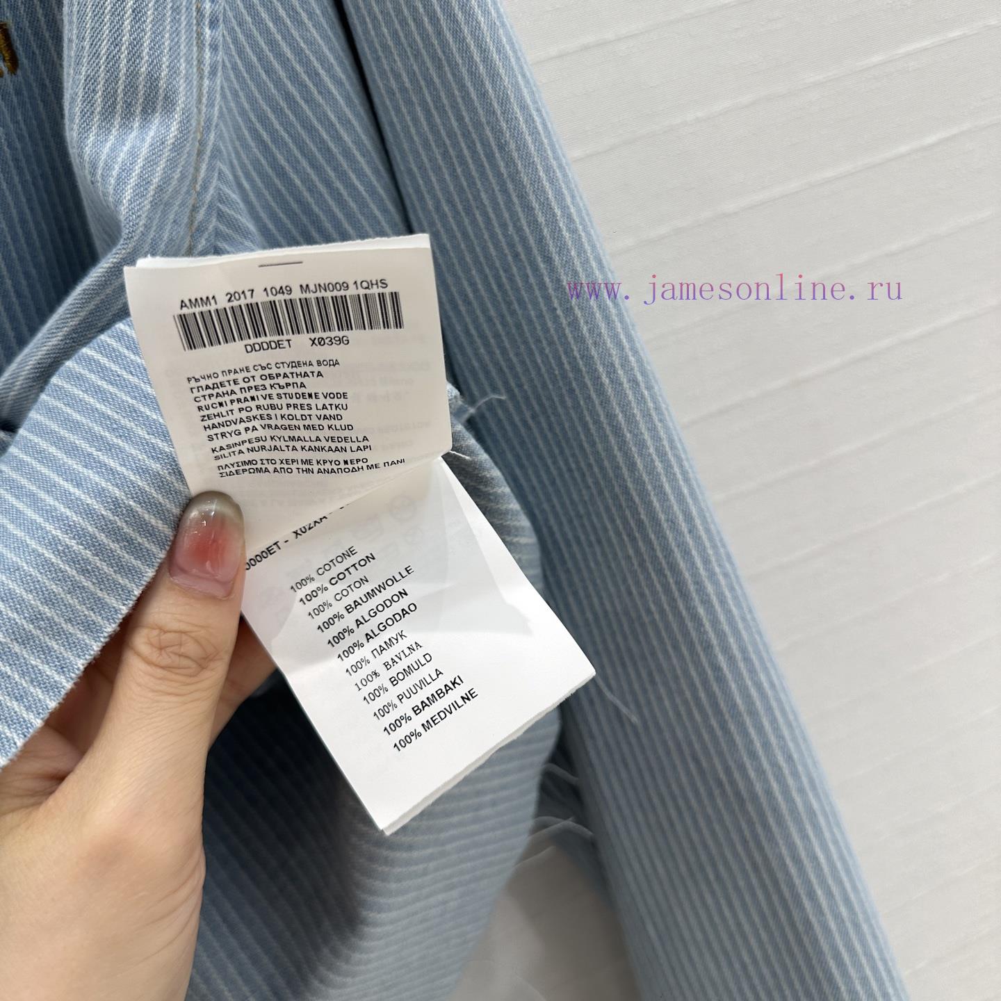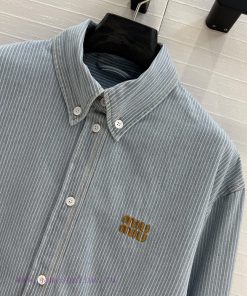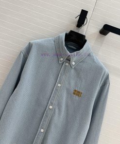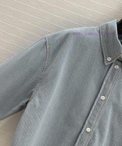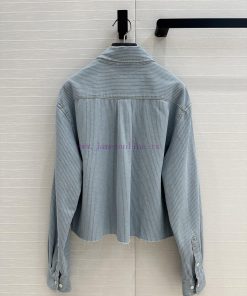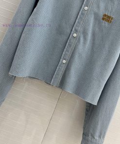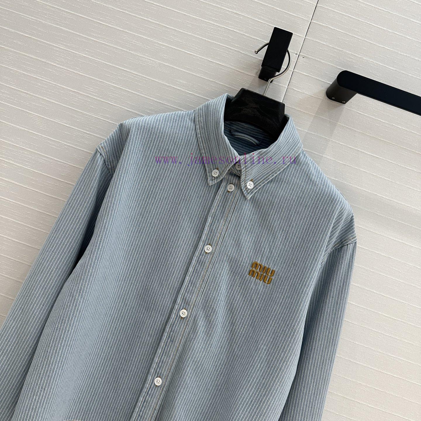 High end quality, BC77580 mi * 25 Spring/Summer New Product Pre release Series Light colored washed striped denim short shirt with unique edge washing technology, brown embroidered letter logo, low-key luxury, original custom color woven striped imported washed denim soft and delicate texture, super loose small short version, huge upper body, slim, sweet and salty temperament, age reducing girl style, versatile and not picky workmanship quality, look at details in stock, SML three size large order thrown over S size, shoulder width 47, chest circumference 116, clothing length 51, chest circumference difference of 4 per size, shoulder width and clothing length difference of 1