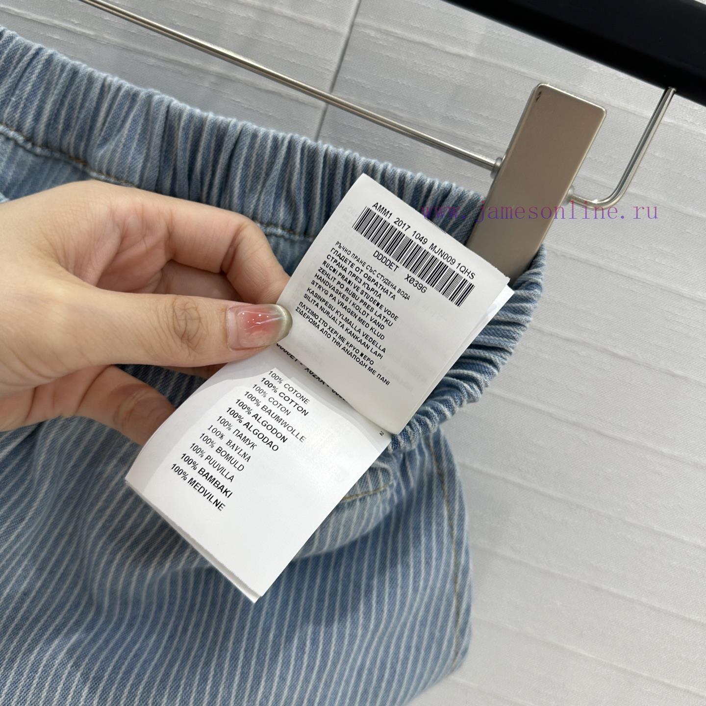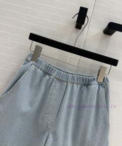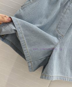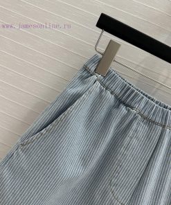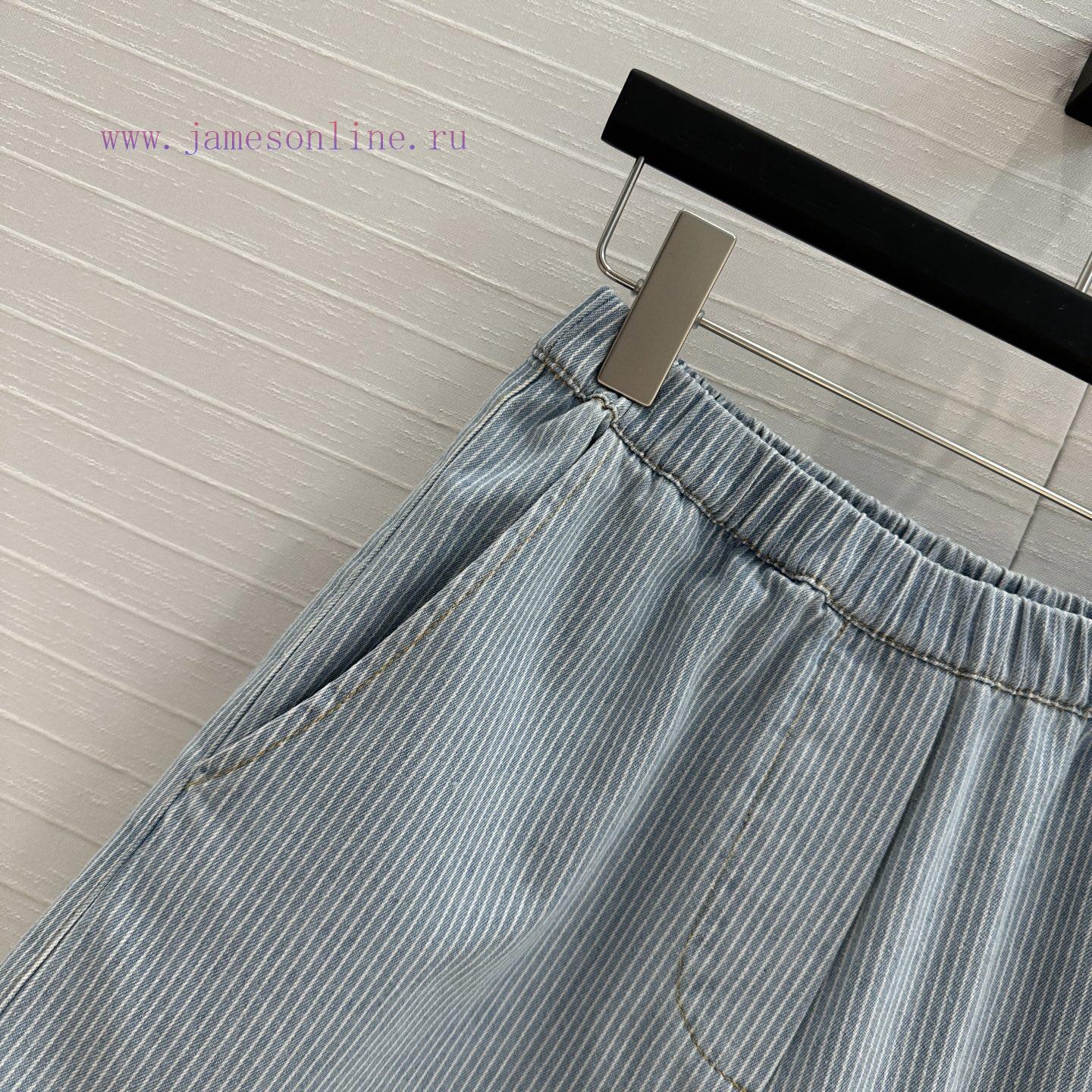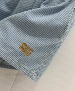 High end quality, BK77579 Miu * 25 Spring/Summer New Collection, retro striped denim shorts, elastic waist straight leg casual pants with super cool and contrasting embroidered letter logo, low-key luxury, original custom color woven striped washed denim soft and delicate texture, superb classic version, super slim upper body, versatile and not picky workmanship quality, look at details in stock, SML in three sizes, size S, waist 60, hip 92, pants length 37. Each size has a waist circumference difference of 3, hip circumference difference of 4, and pants length difference of 1. Update Time: April 15, 2025 by TaoChL