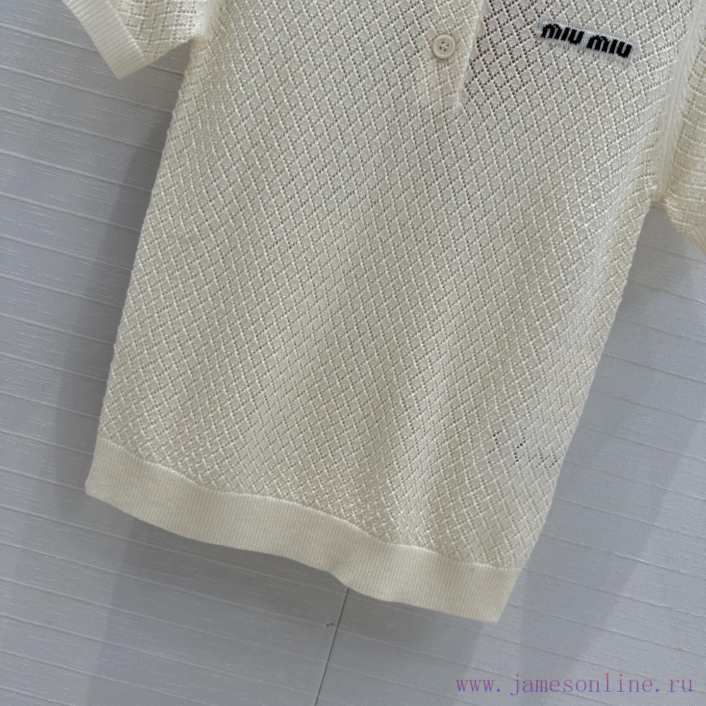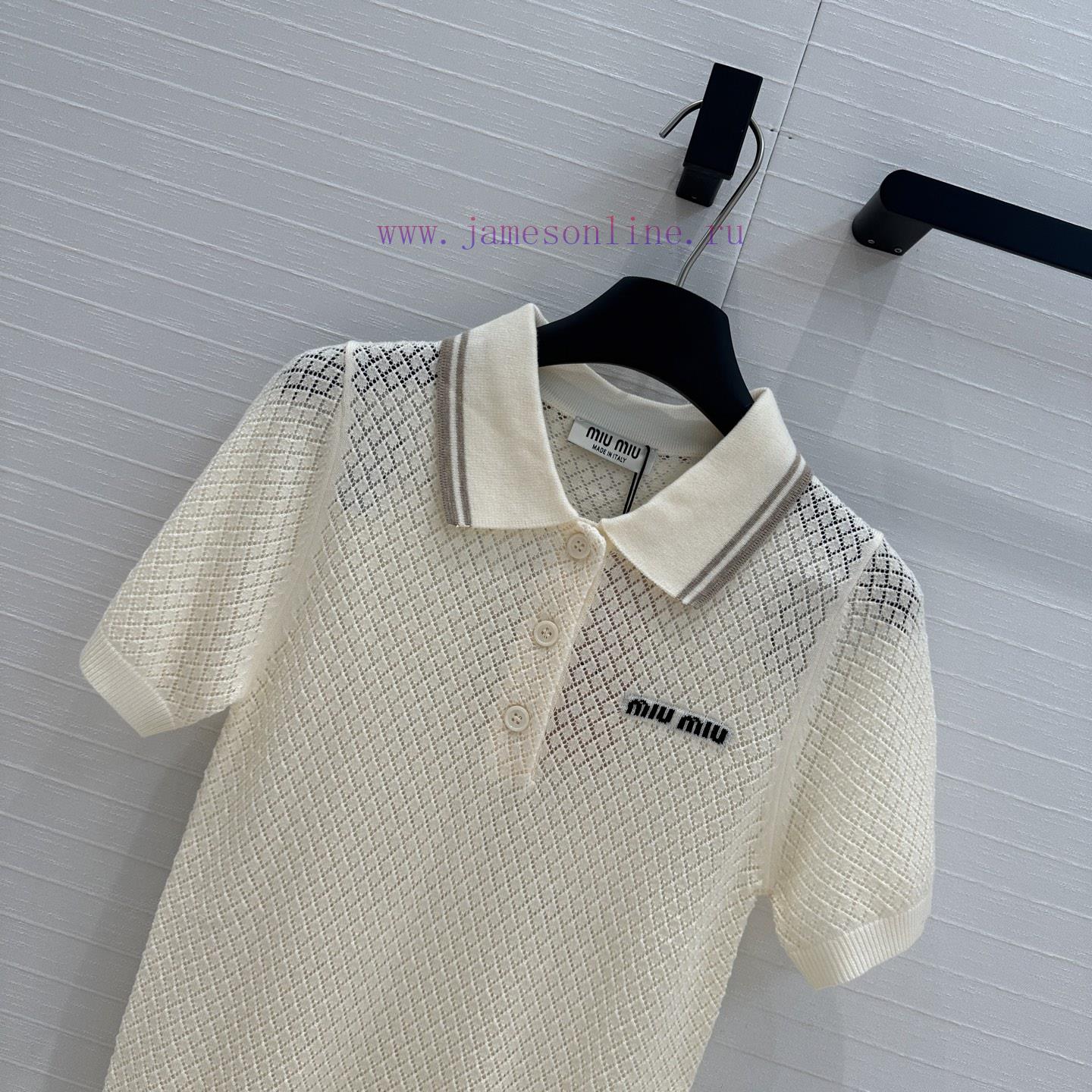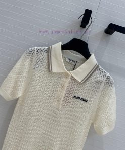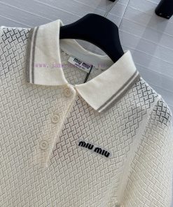 Highly Recommended BT77537 Miu Miu Girl Outfit Fashionable And Sharp Cut Polo Collar Knitted Sh qnqvskxc
