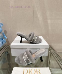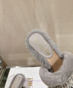 Leather foot pad 8cm gray uniform-23Ss Autumn/Winter New Dior One Word Hairy Slippers Collec1rbx9utj